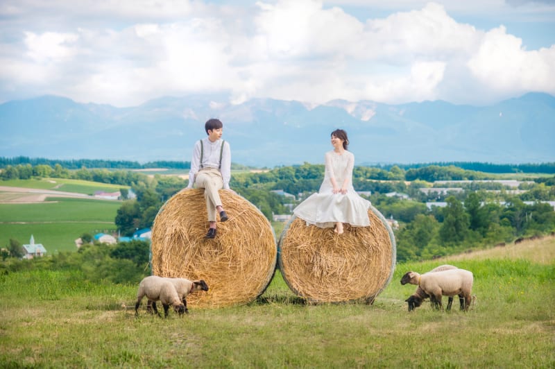 北海道ならではの【かわいい】を詰め込んだ1枚。羊たちも祝福。
