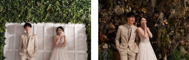新宿店には他にも、ナチュラルな西海岸風の壁・ドライフラワーの壁などカジュアルな撮影ができる空間がたくさん。お二人の撮りたいイメージに合わせて、いろいろな背景での撮影が叶います。