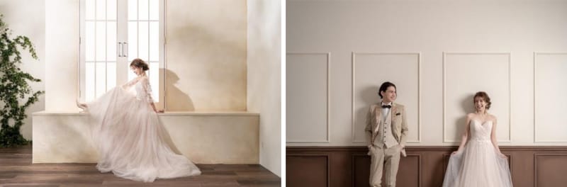 また、天候を気にすることなくロケーション撮影のような写真が撮れる屋内庭園スタジオも完備。和装と洋装の組み合わせプランをご用意しているので、併せてお楽しみいただくことも可能です。