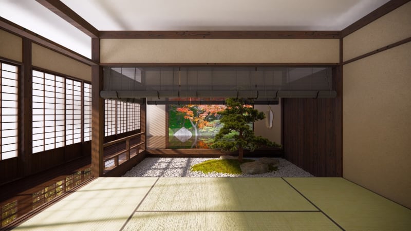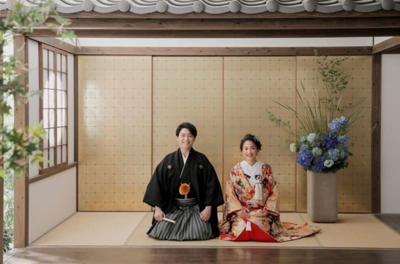 本格日本庭園を再現したスタジオで撮る 和装の結婚写真