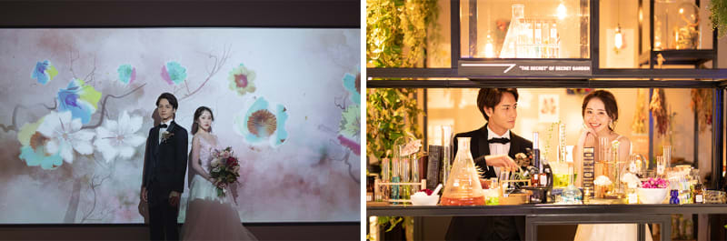 営業時間外に貸し切って撮影を行うため、アート空間のほか施設内すべての空間が撮影スポットとして使用可能に。人目を気にすることなく、特別な空間での結婚写真を残すことができます。