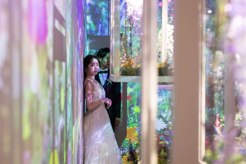 色鮮やかな光により巡る季節を感じられる空間や、触れると景色が変わっていくインタラクティブアート、植物たちが賑やかに生い茂るハーブ園など、当施設の世界観をお楽しみいただきながら、さまざまなアート空間の中で撮影を行います。