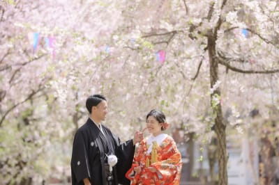 本格日本庭園を再現したスタジオで撮る 和装の結婚写真