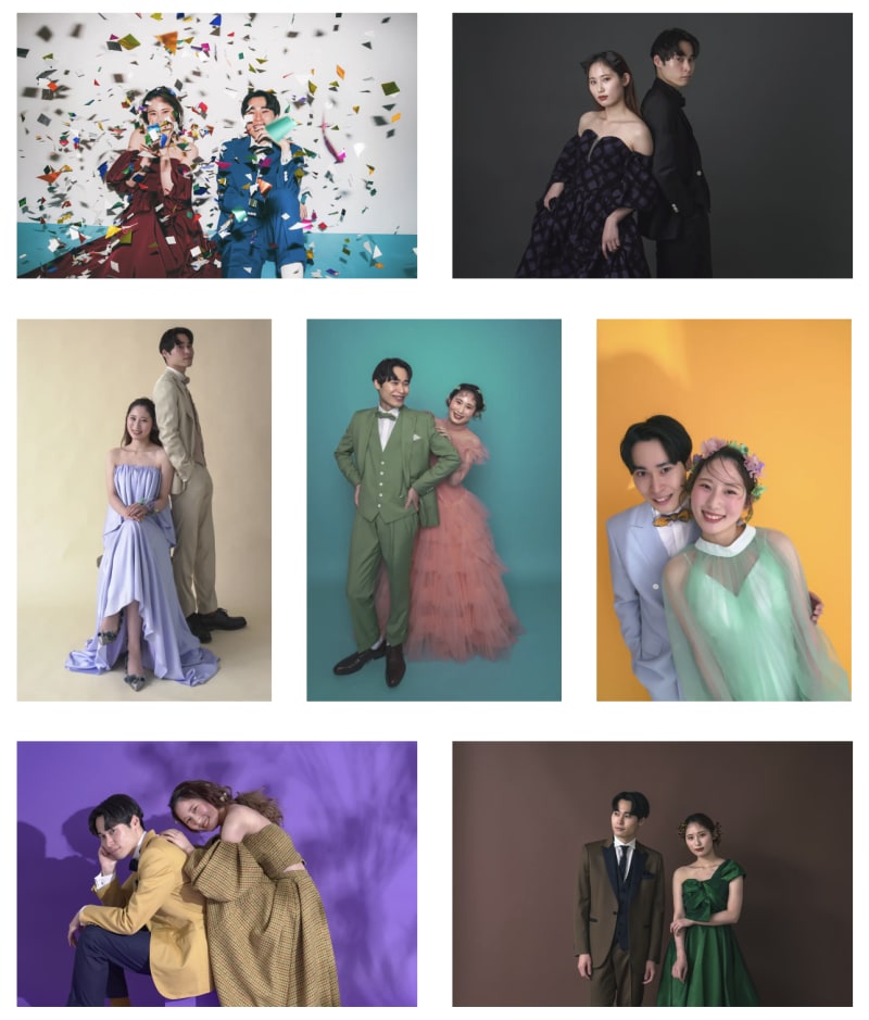 カラー衣装×カラー背景×カラー小物の組み合わせで生まれる、これまでにないカラフルでハッピーなウェディングフォト✨