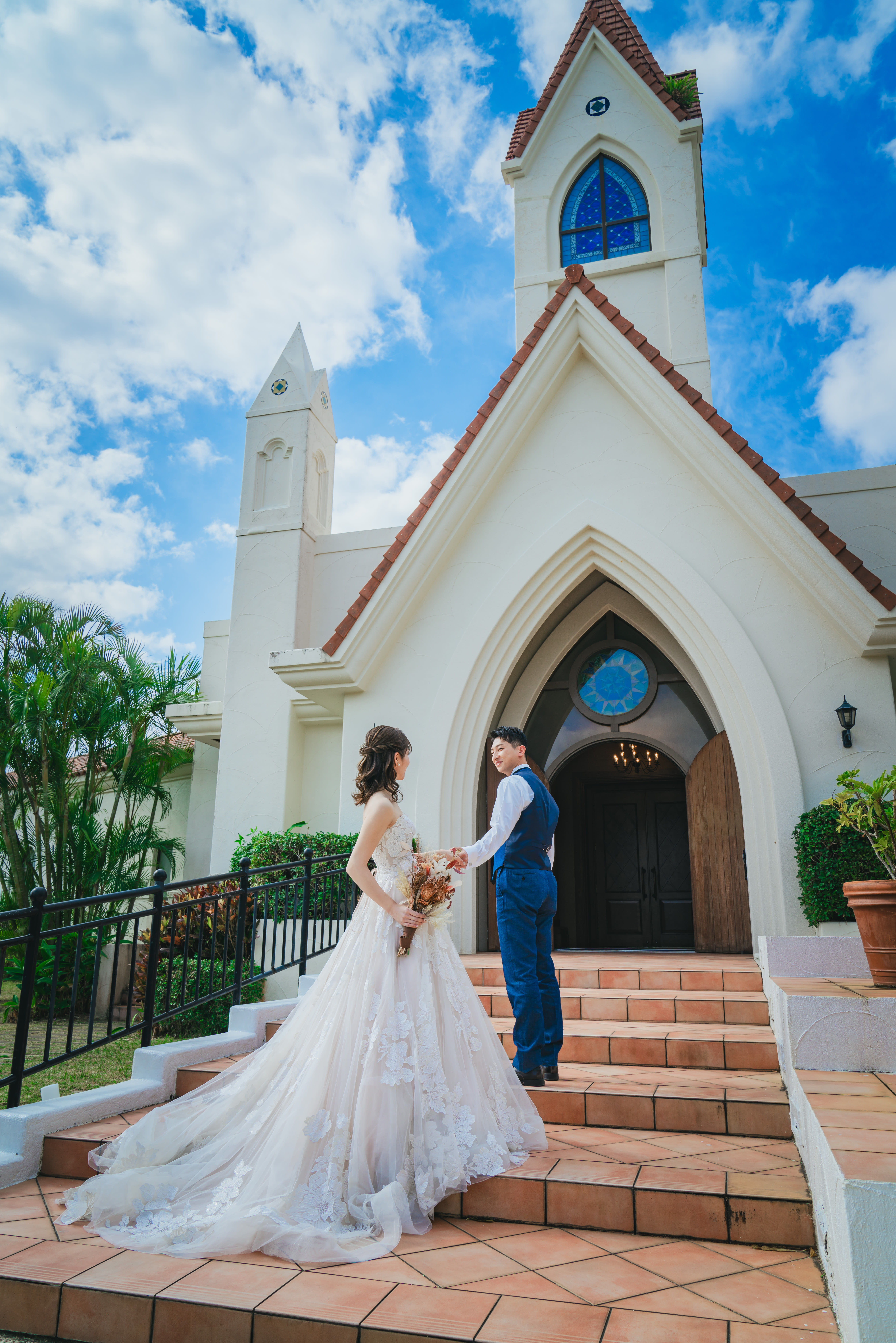 スタジオSUNSからすぐの屋内チャペル!屋上庭園とブルーのチャペルで南国を味わえるおすすめチャペルです。