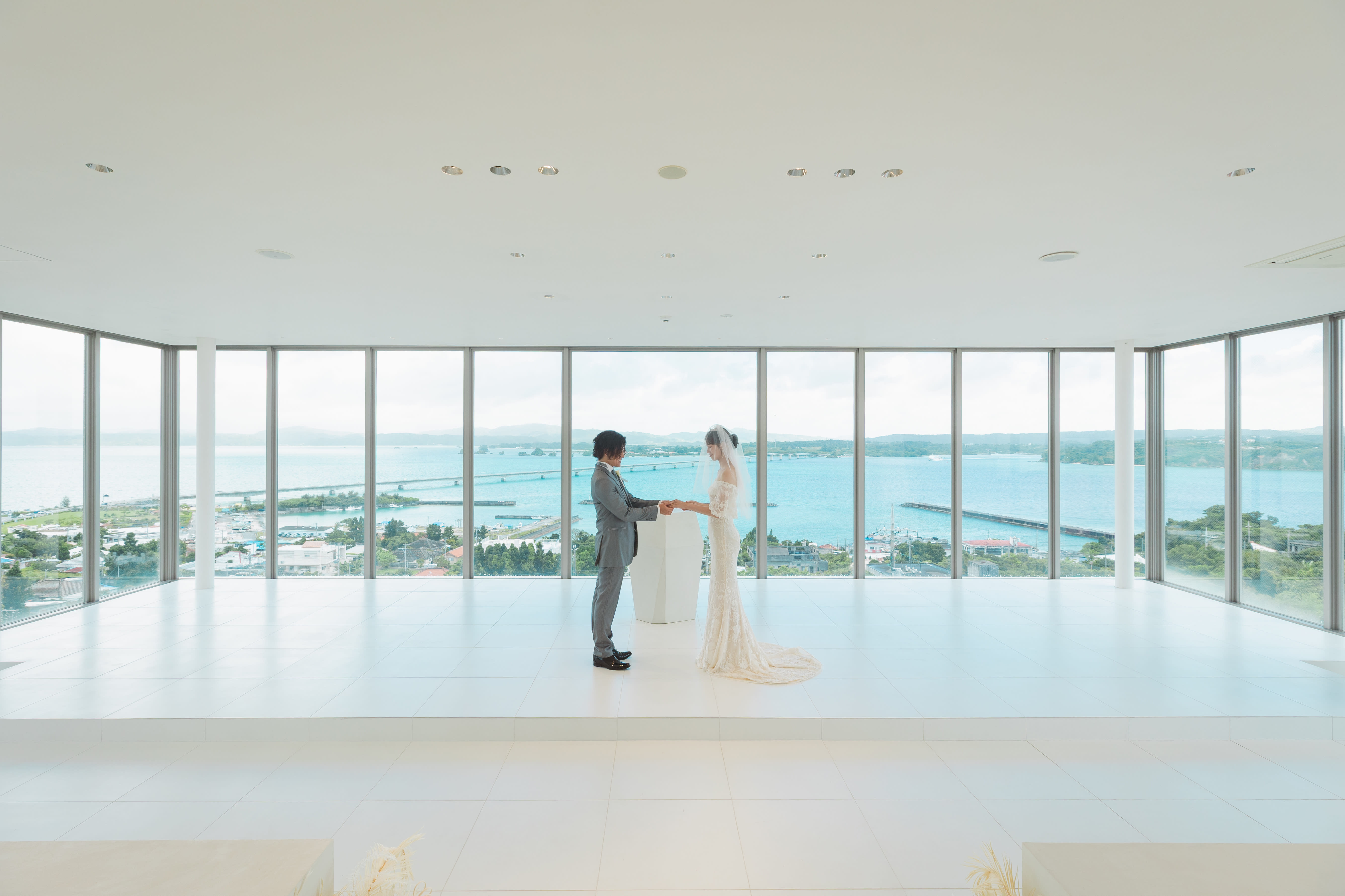 古宇利島にあるチャペル。大パノラマのような迫力のチャペルで沖縄を感じられるチャペル撮影が可能です。
