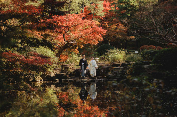本格日本庭園を再現したスタジオで撮る 和装の結婚写真