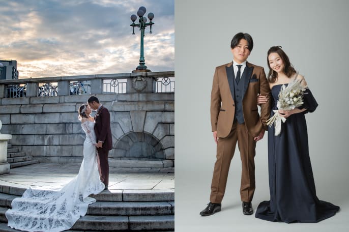 中之島公園での洋装ロケーション撮影と、梅田店スタジオでの和装撮影とがセットになったプラン。和洋両方の衣装が楽しめ、ロケーション撮影とスタジオ撮影も楽しめる充実の内容となっています。式を挙げないおふたりのための、フォトウェディングとしてもおすすめです。