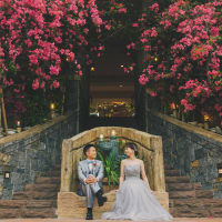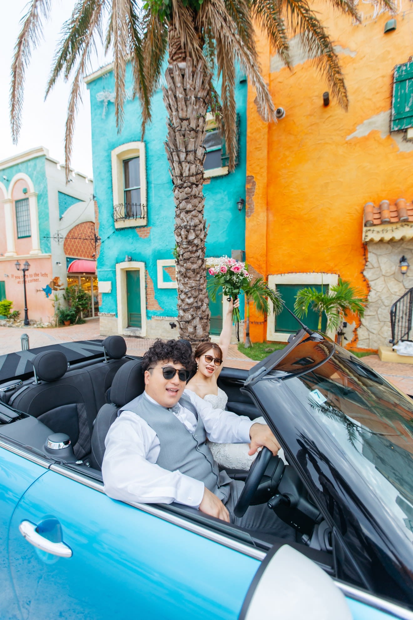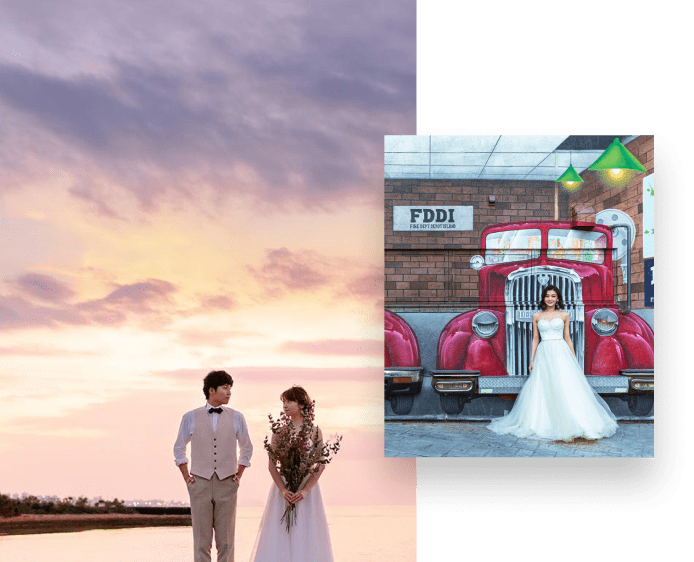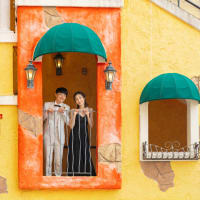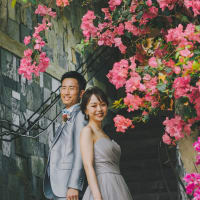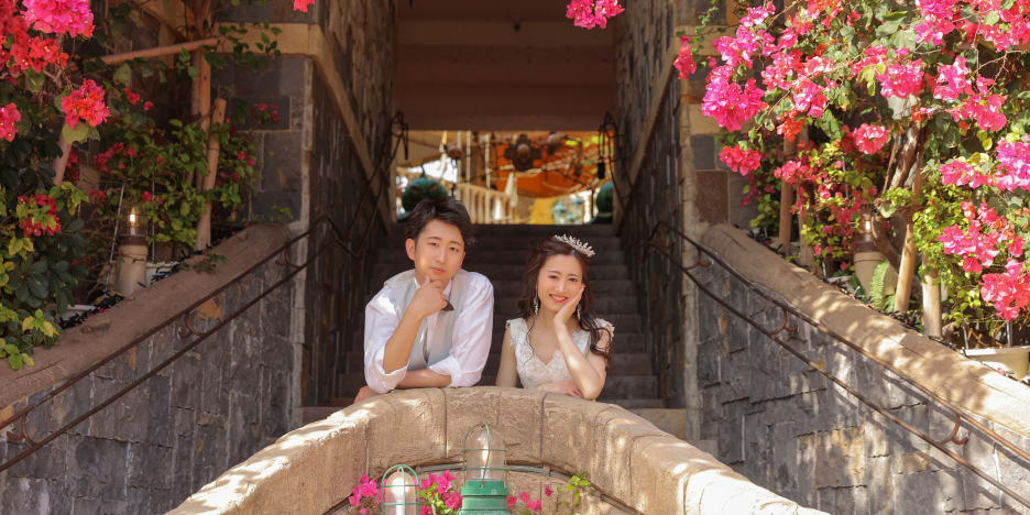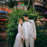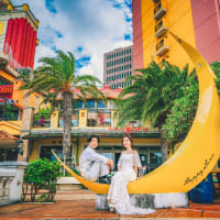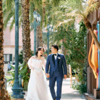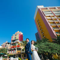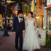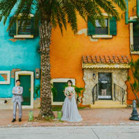 異国情緒あふれるアメリカンビレッジでは、ドレスとタキシードが映えるロマンチックな撮影を。