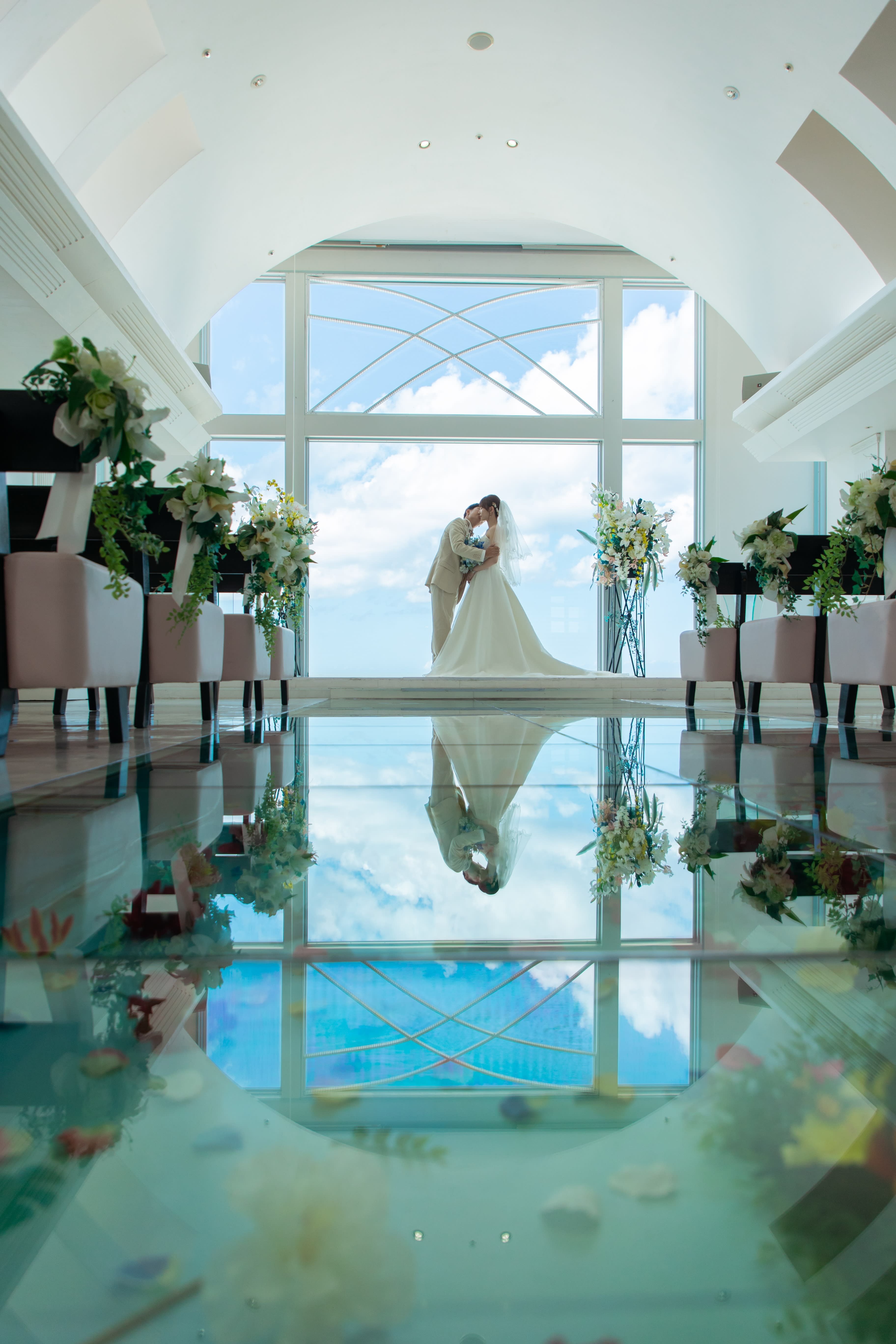 スタジオSUNSからすぐの屋内チャペル!屋上庭園とブルーのチャペルで南国を味わえるおすすめチャペルです。