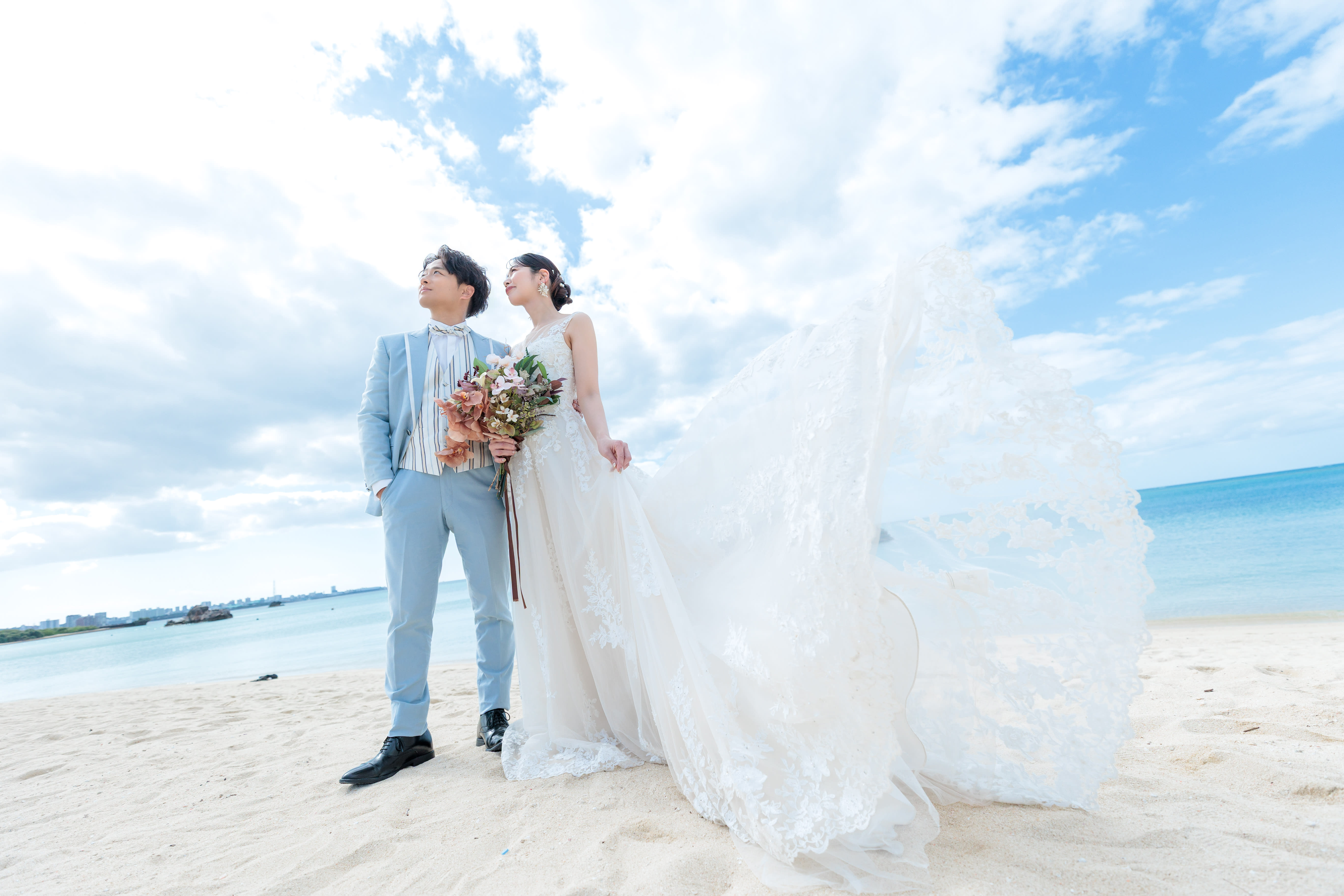 白い砂浜と青い海、青い空!!沖縄らしい楽しいビーチフォトを。