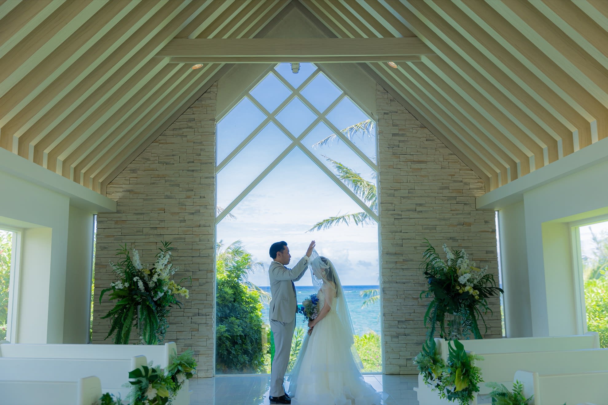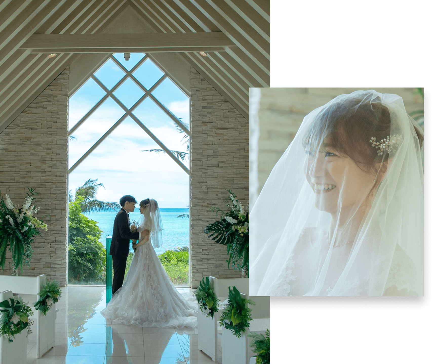 CHAPEL海が見えるチャペルや、ガジュマルの木の下でフォトウエディング。岬と海、ガーデンに咲く花、ホテルの中も撮影ができるプランです。