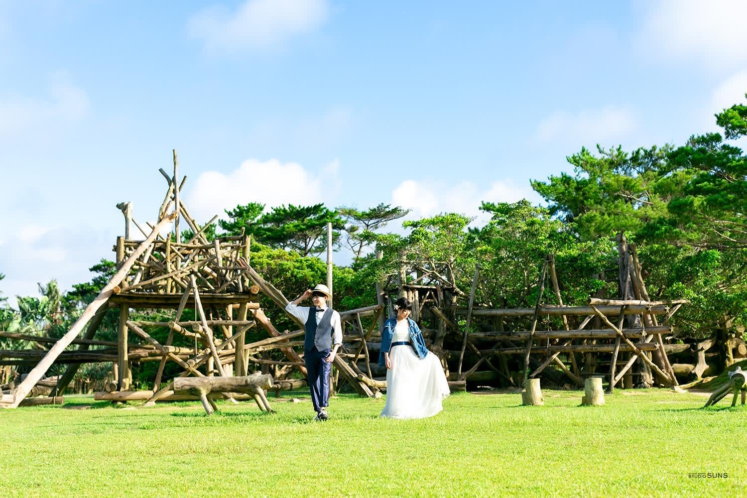 沖縄本来の自然を再現した植物園「ビオスの丘」とビーチでの撮影を満喫するコースです。