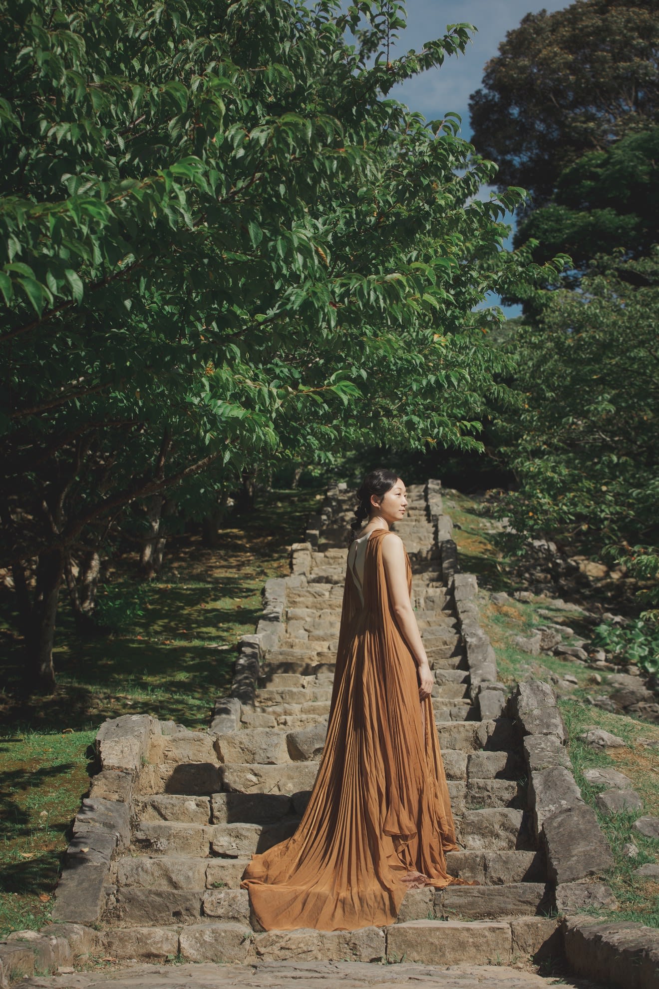 透明度の高い天然のビーチで撮影したら、今度は緑溢れるフクギ並木を散歩して、