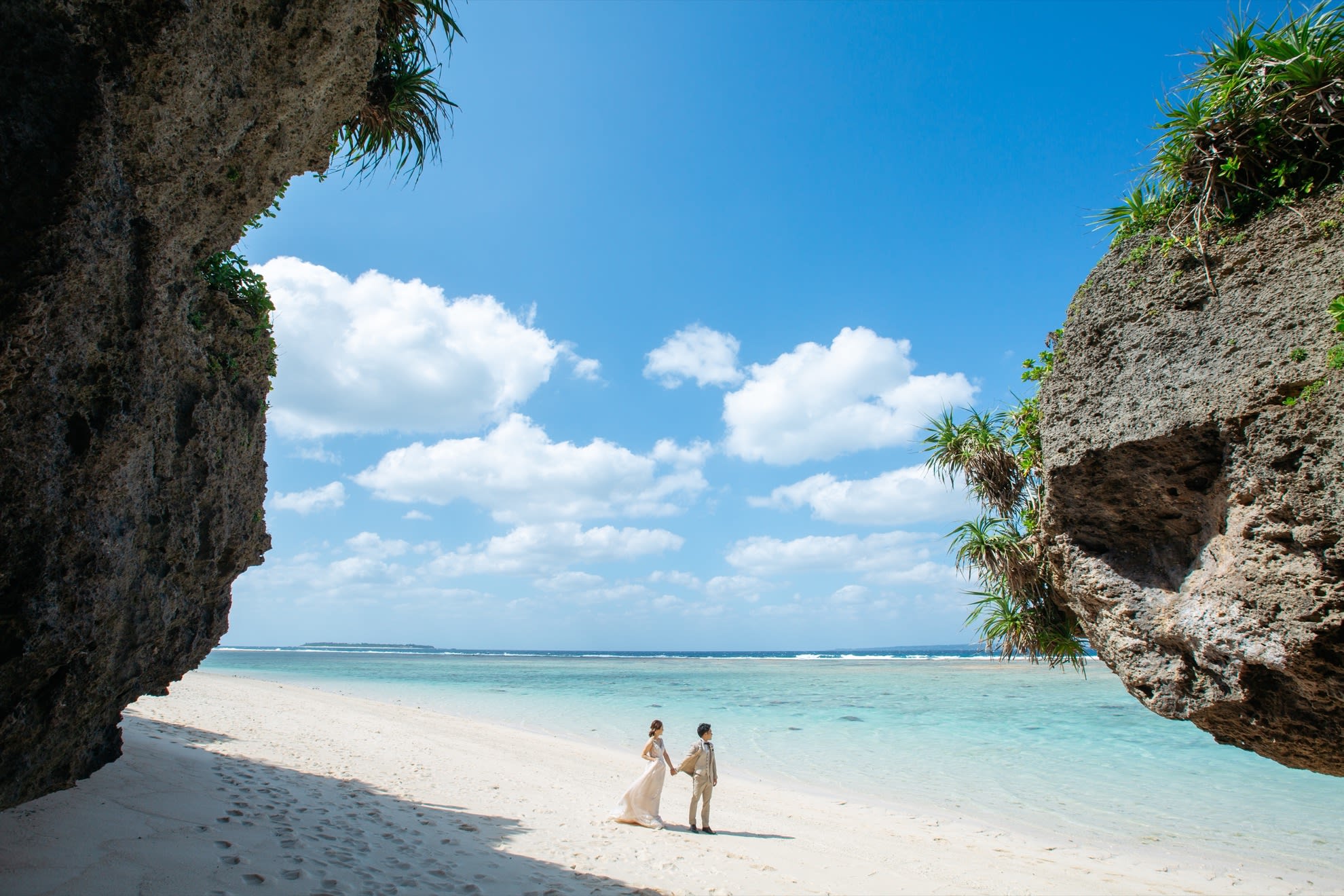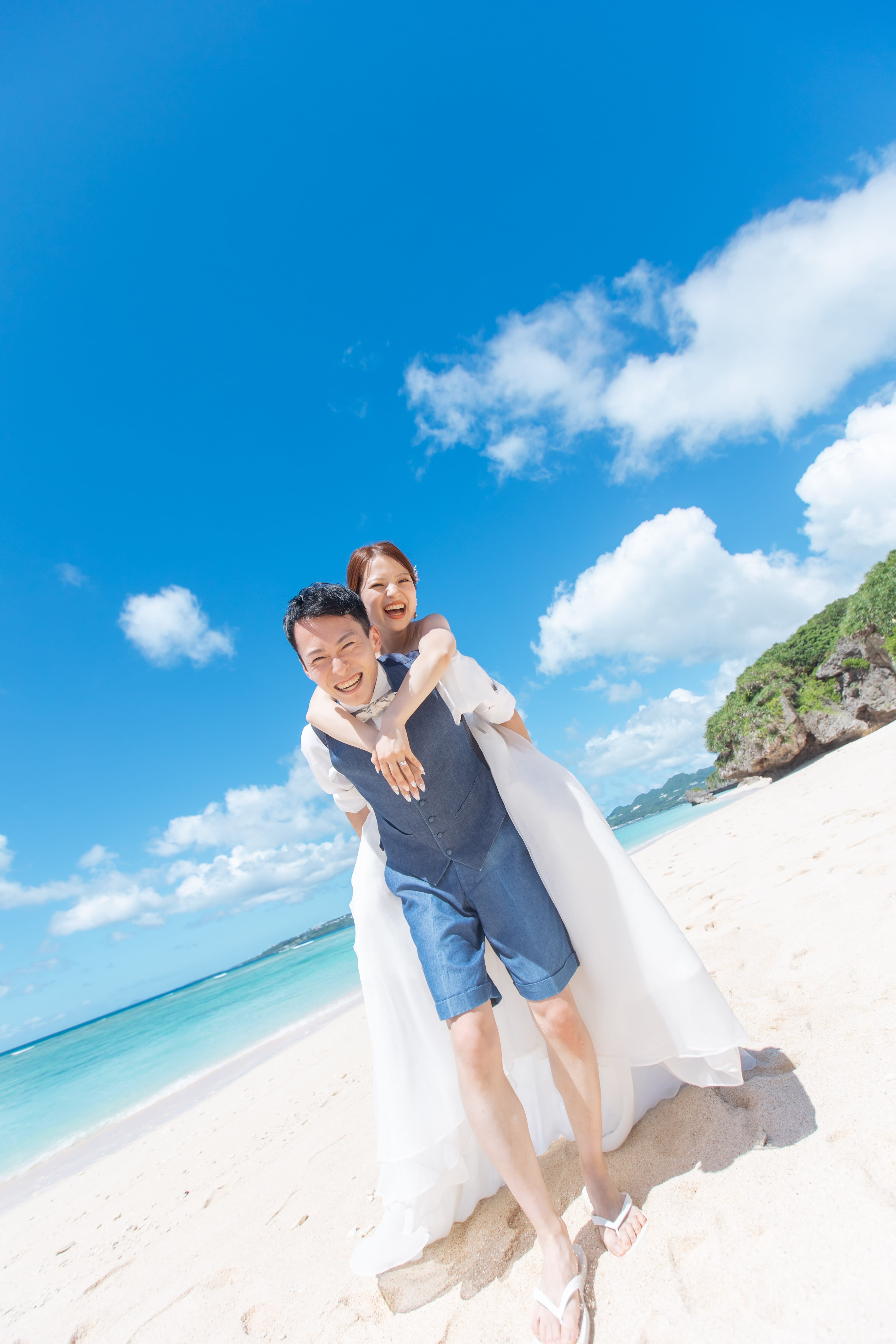 透明度の高い天然のビーチでの撮影と、