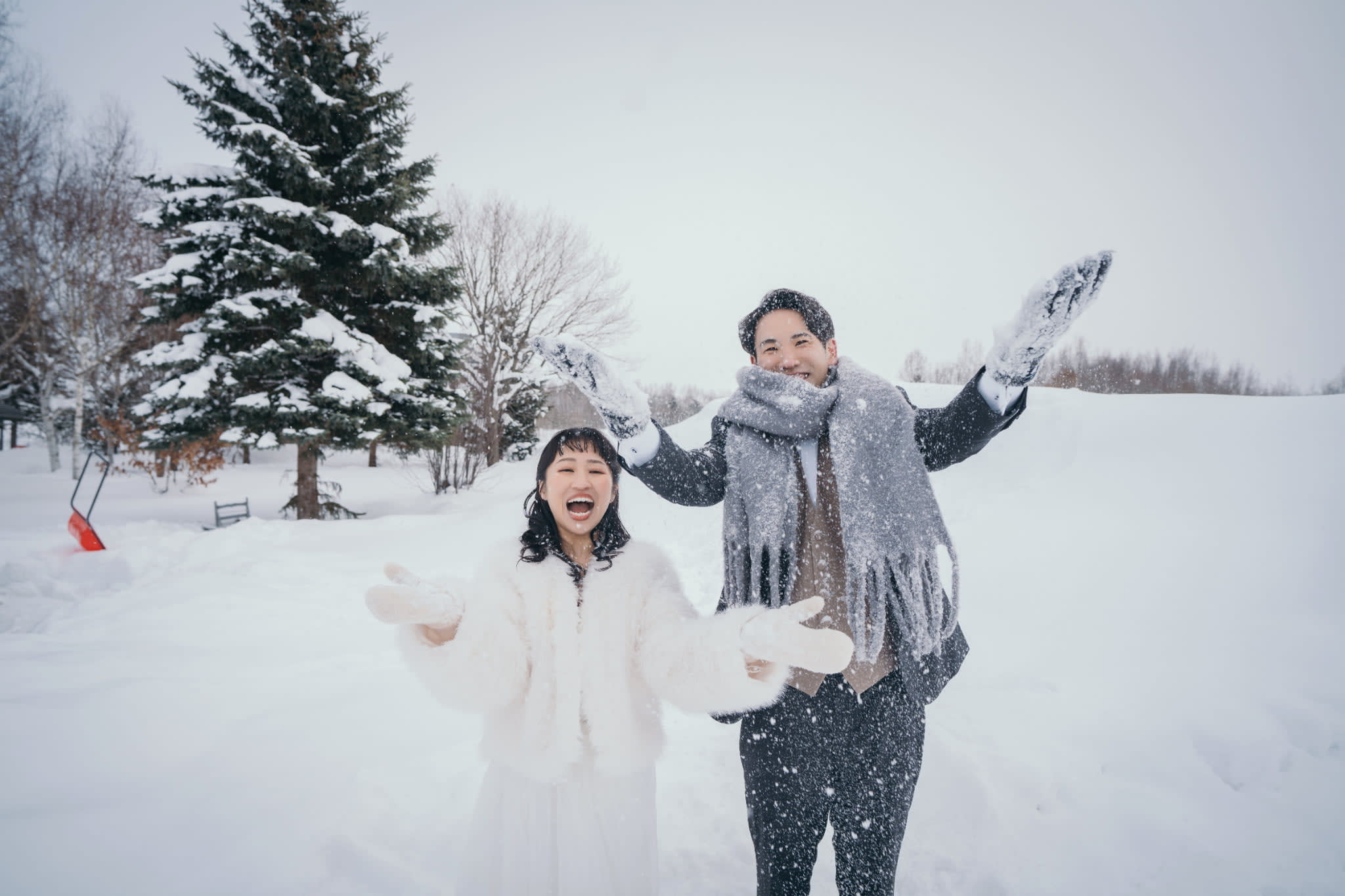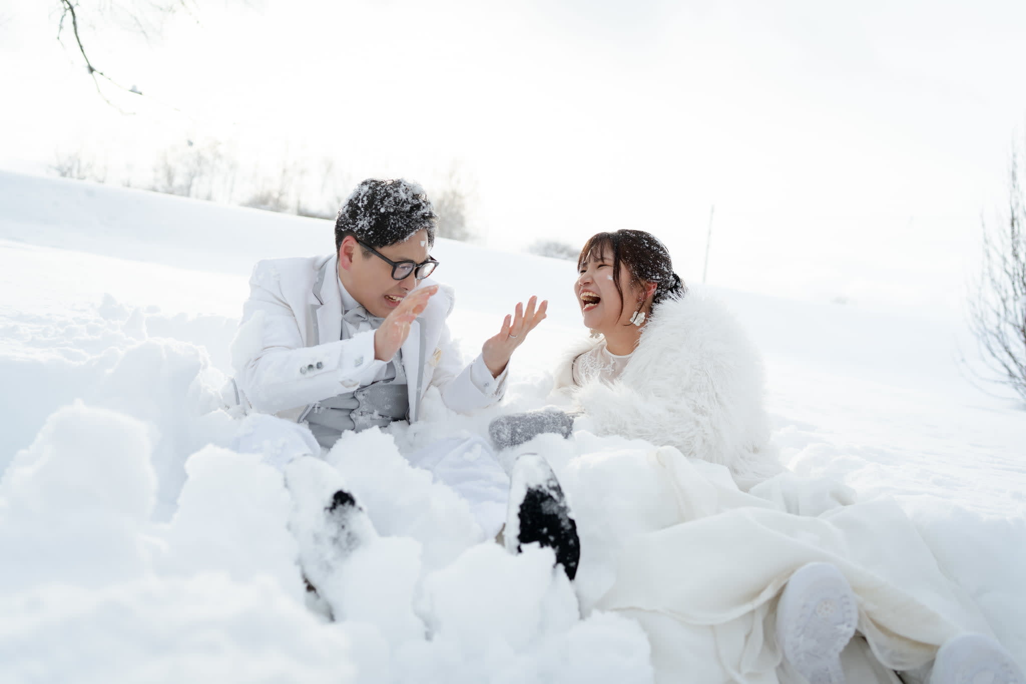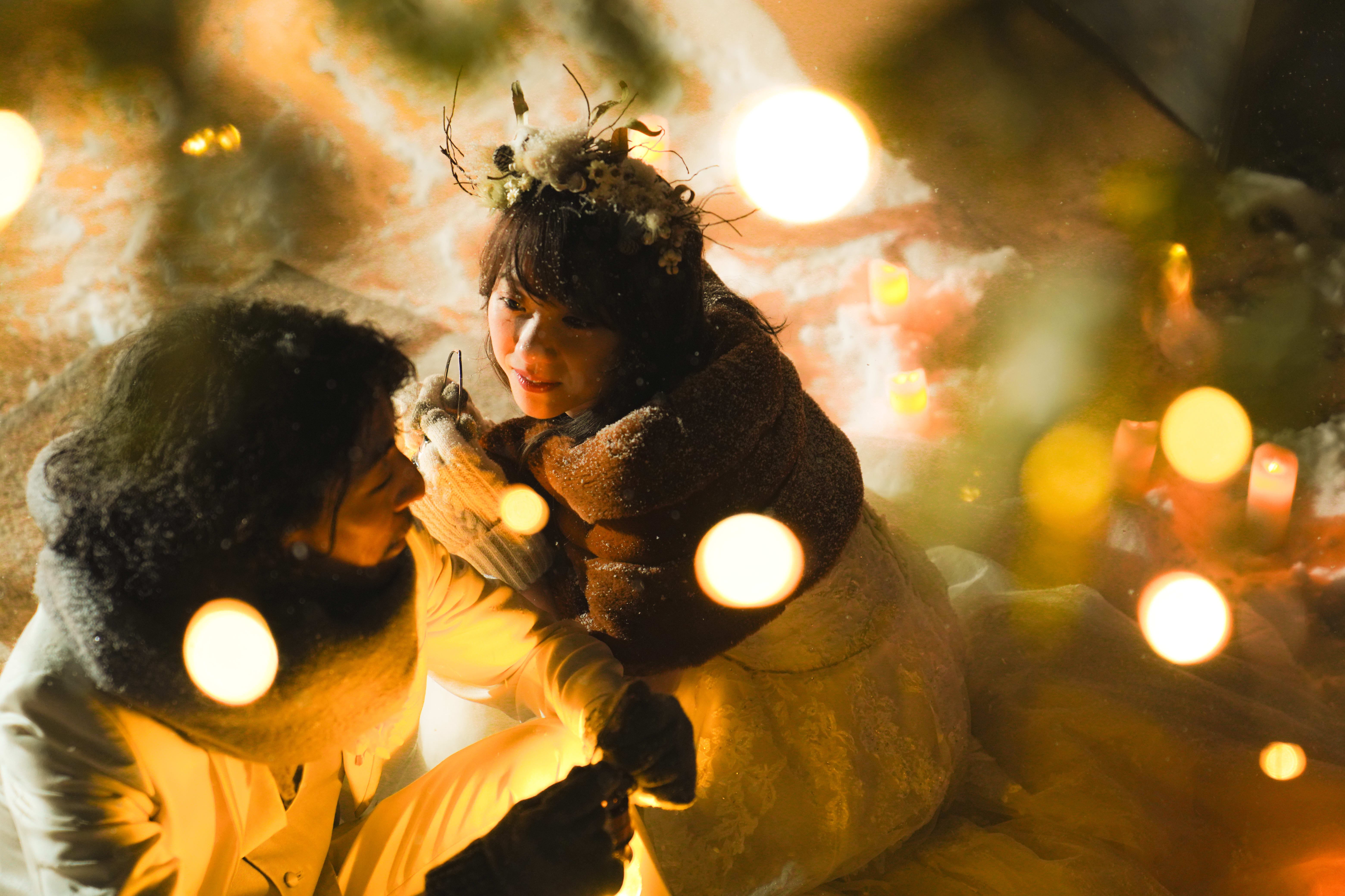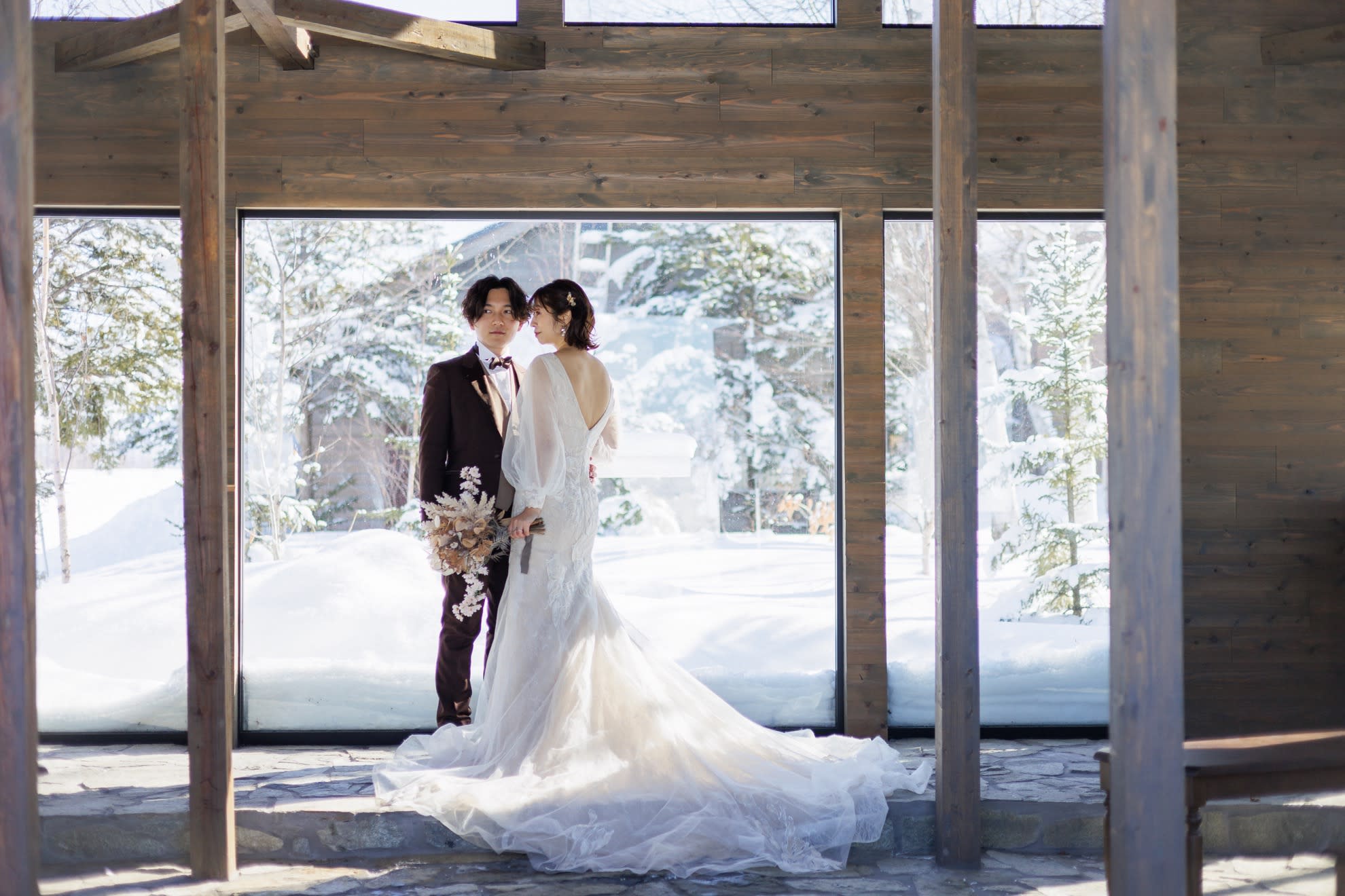 真っ白な雪に囲まれた非日常なウェディングフォト