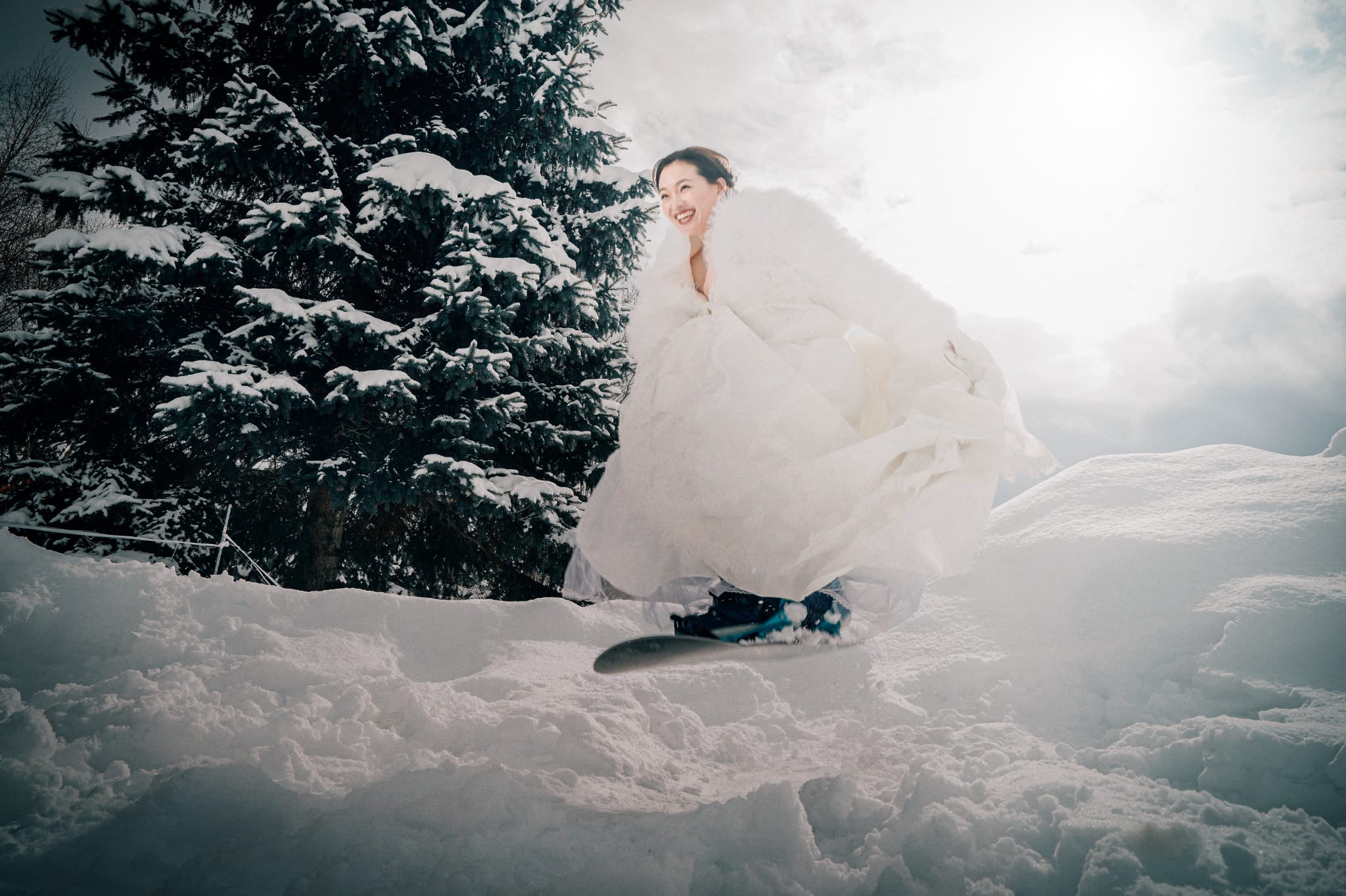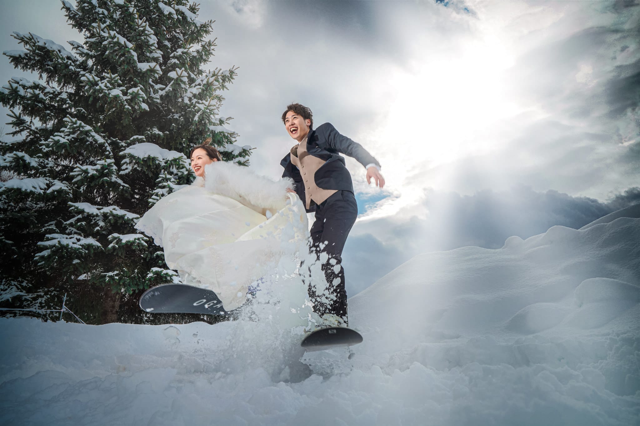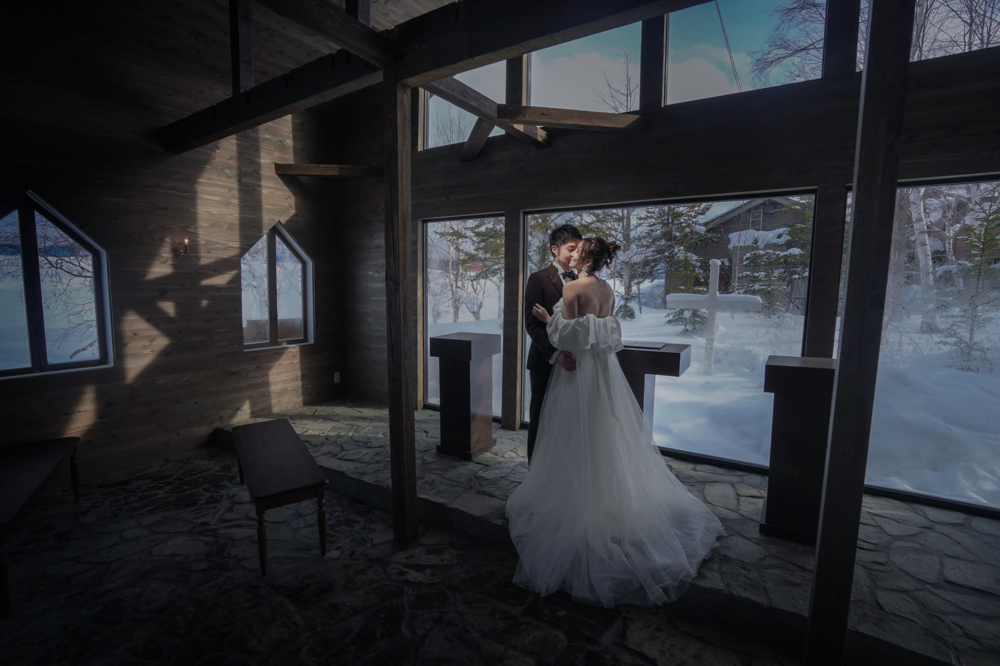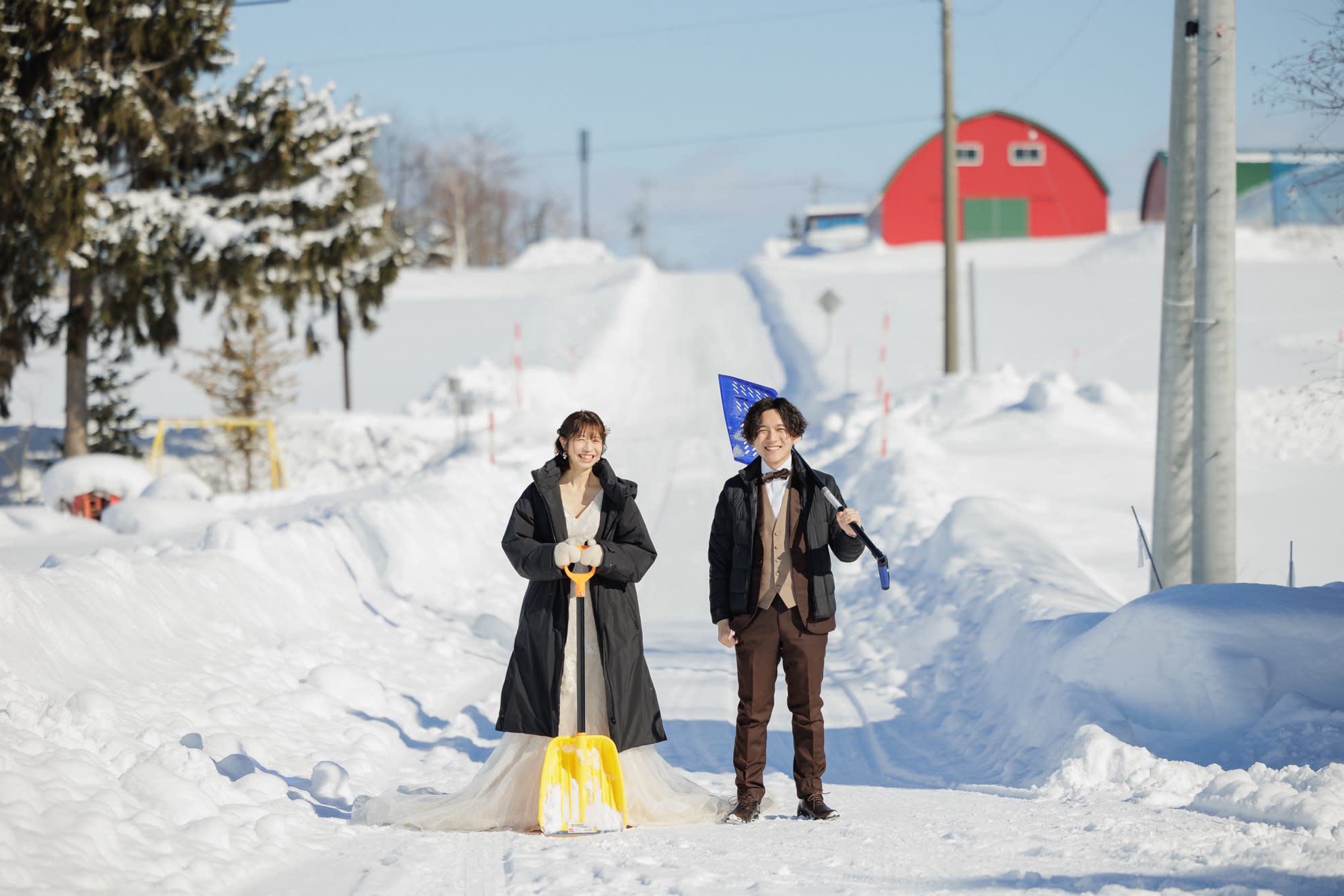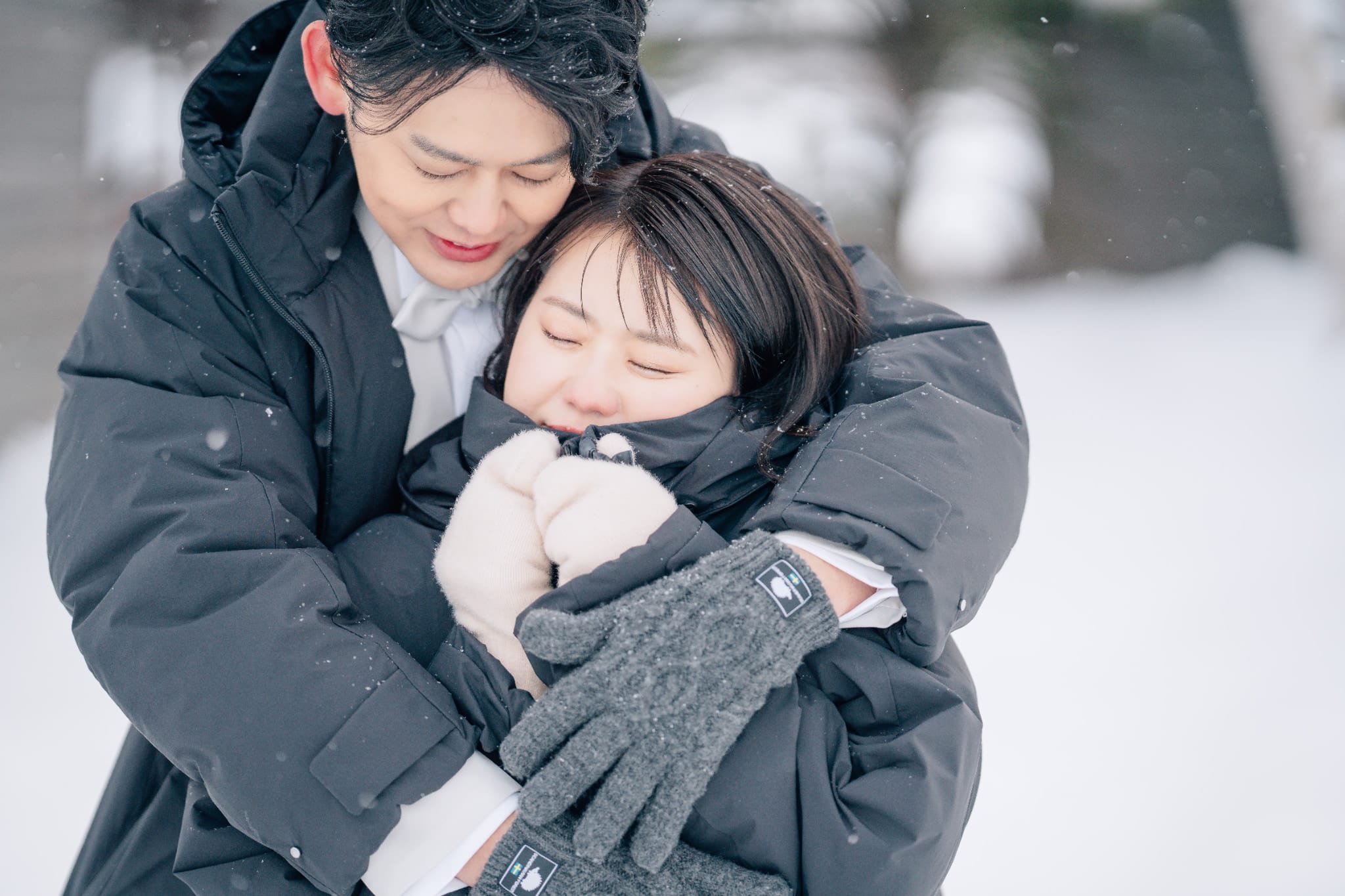 真っ白な雪に囲まれた非日常なウェディングフォト