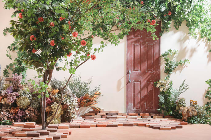 ドライフラワーやドリームキャッチャーが飾られた、スタジオAN(福岡県)の和装撮影プランをご用意。カジュアルな背景としっとりとした和装がちょうど良いバランスで調和し、おしゃれなウェディングフォトを演出します。