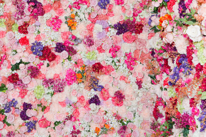 グリーン、木の背景、頭から足元まで全方位囲まれたフラワーボックスなど、多彩なデザインのハウススタジオ。