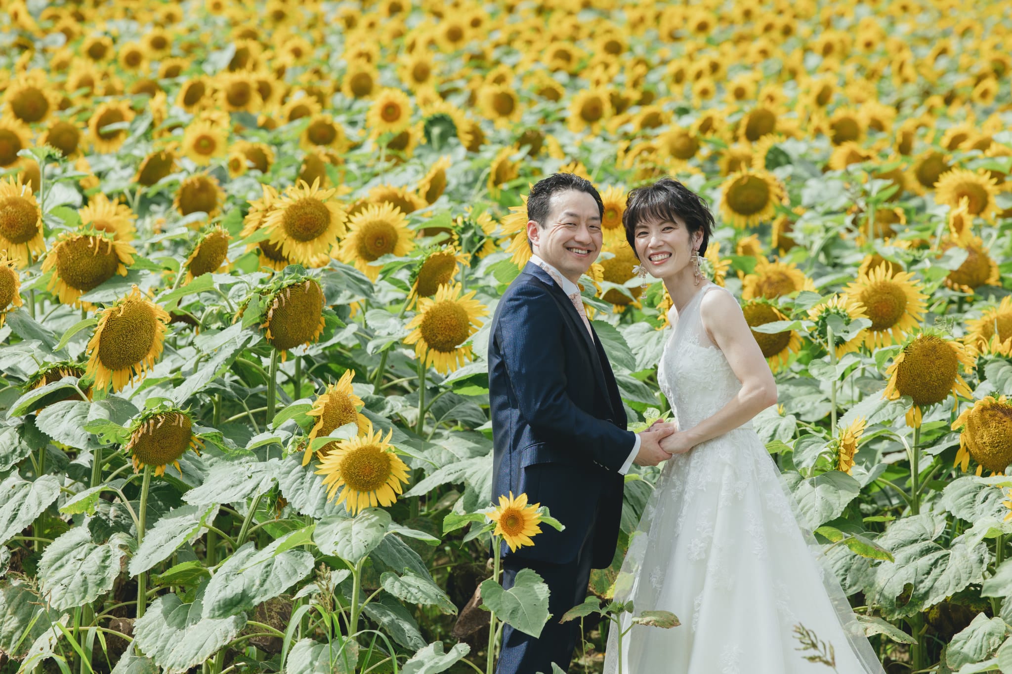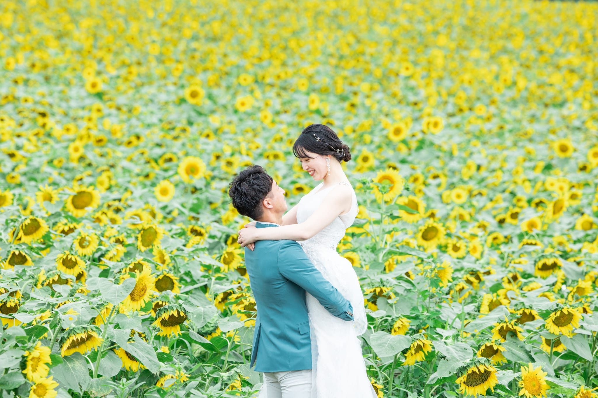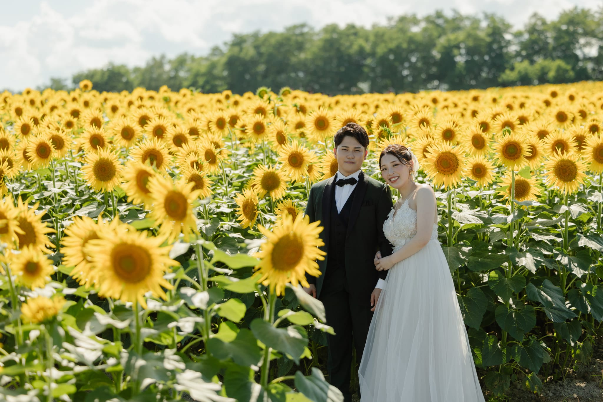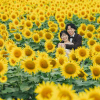 真夏の太陽を浴びて華麗に咲き誇る、約200万本にも及ぶひまわりたちと一緒に撮影できるプランです。