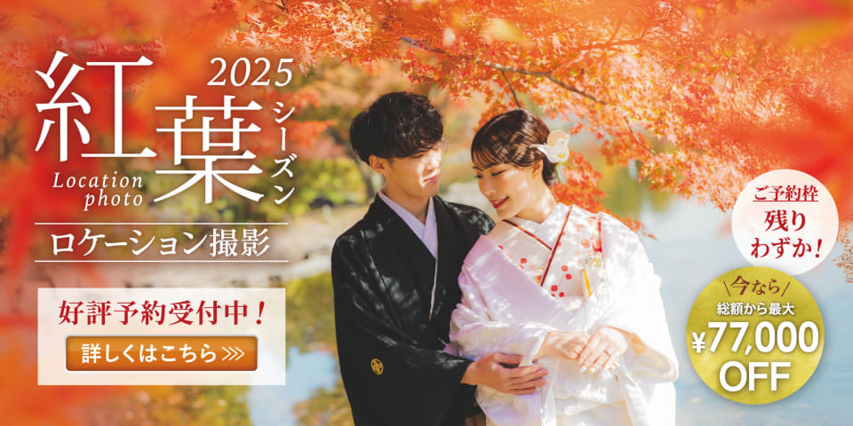 憧れのウェディングドレスも、伝統的な着物も。選べる和装+洋装プランは、1つのプランで和洋両方の衣装を贅沢に楽しみながら、お得に結婚写真を残すことができます。