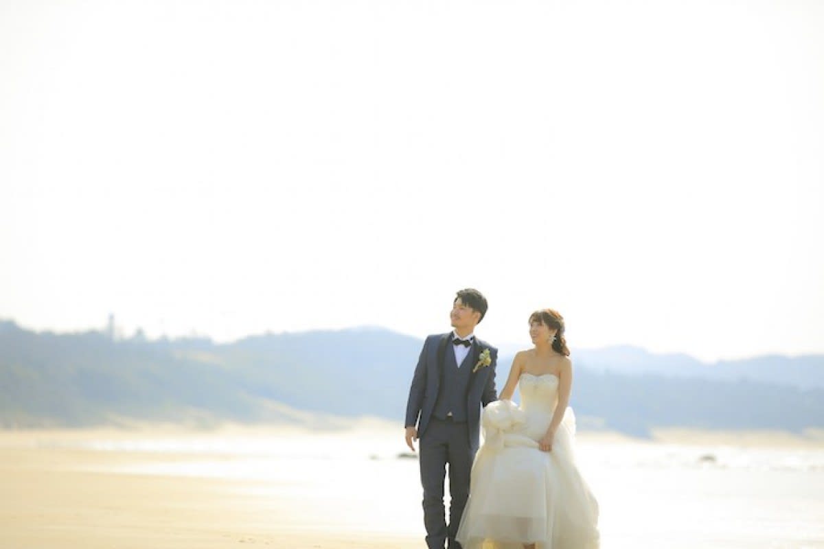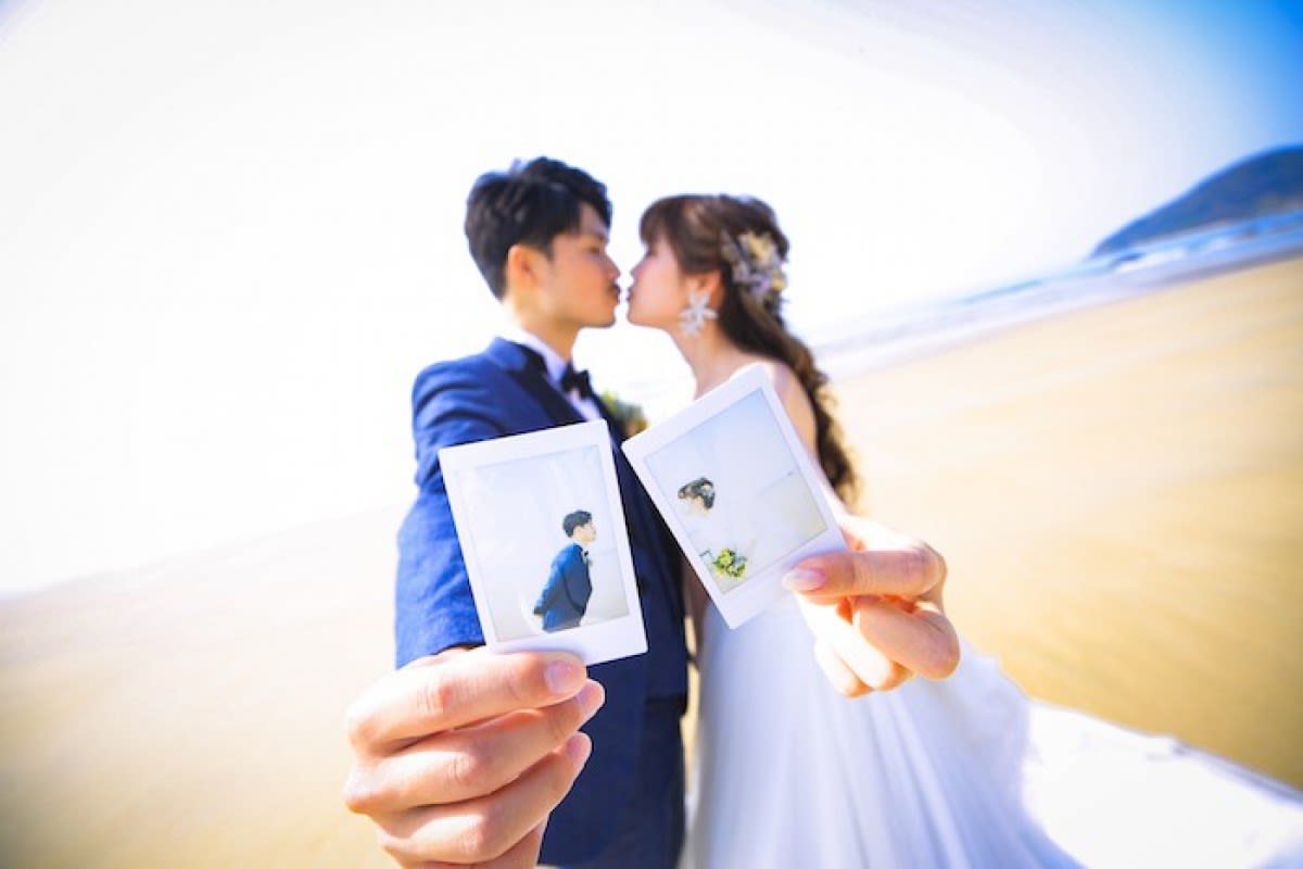 写真で二人だけの式をしたい!とご要望頂きましたのでビーチでの式提案。