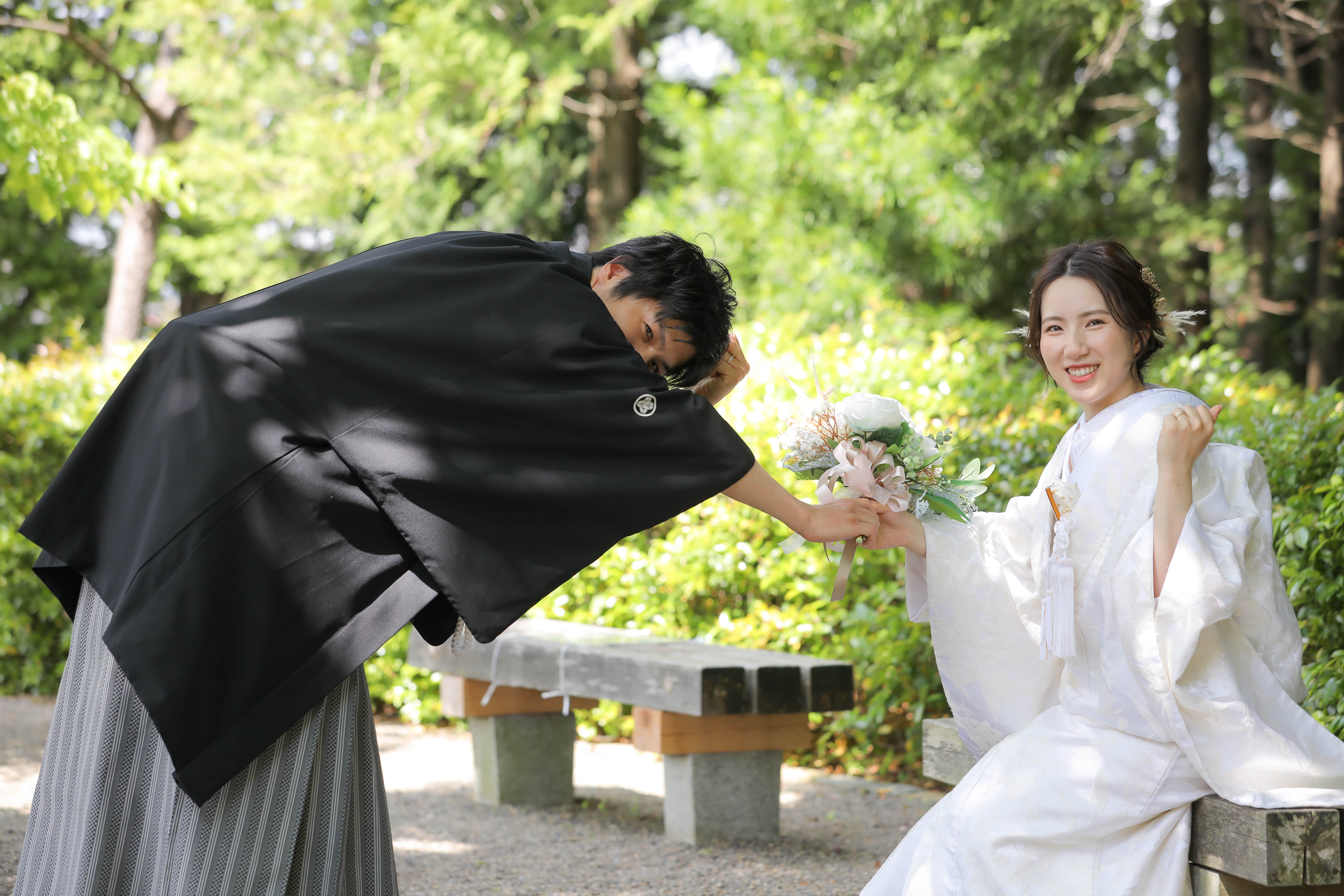 お茶目な様子のご新郎様にご注目! たくさんお二人らしい表情を見せてください!