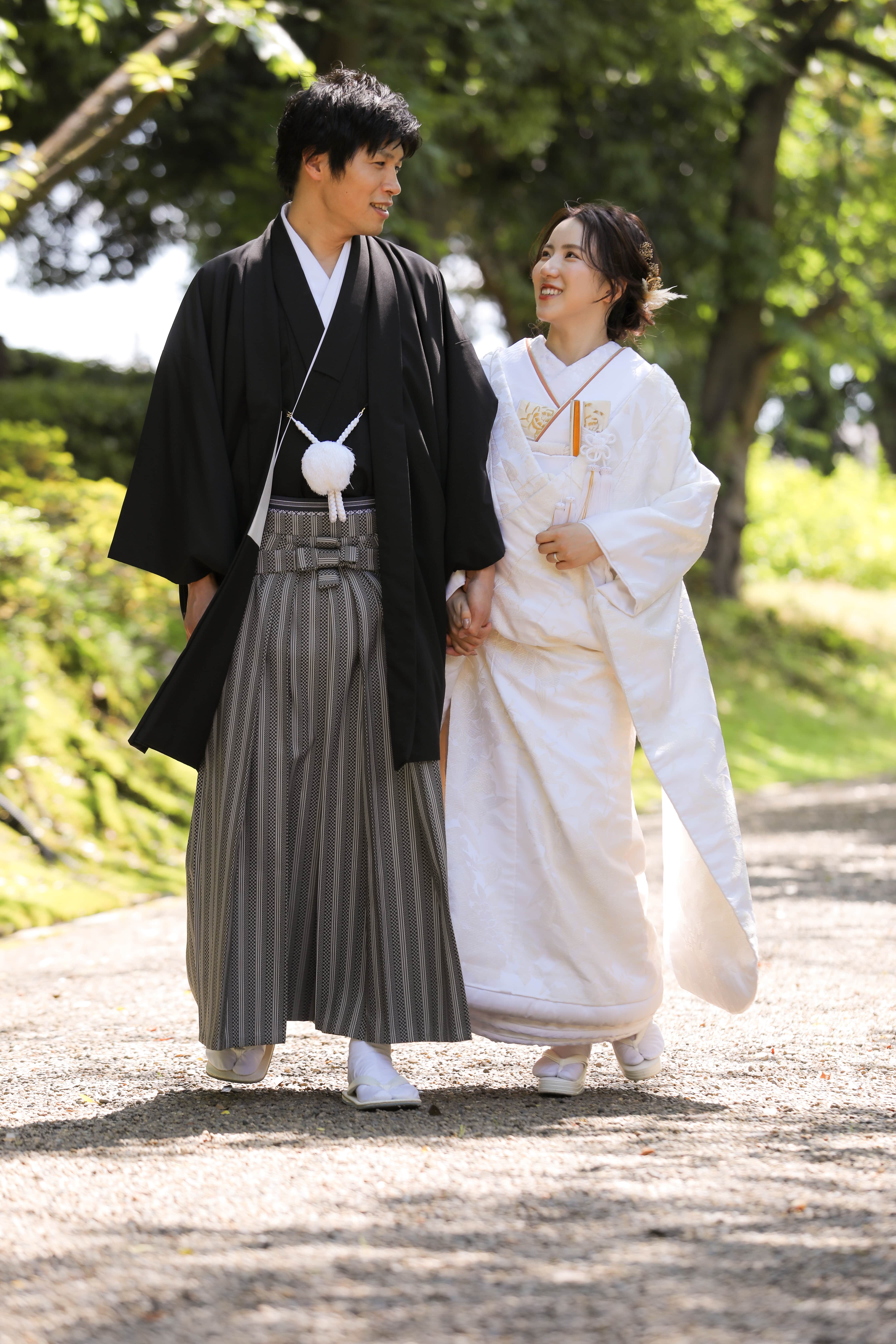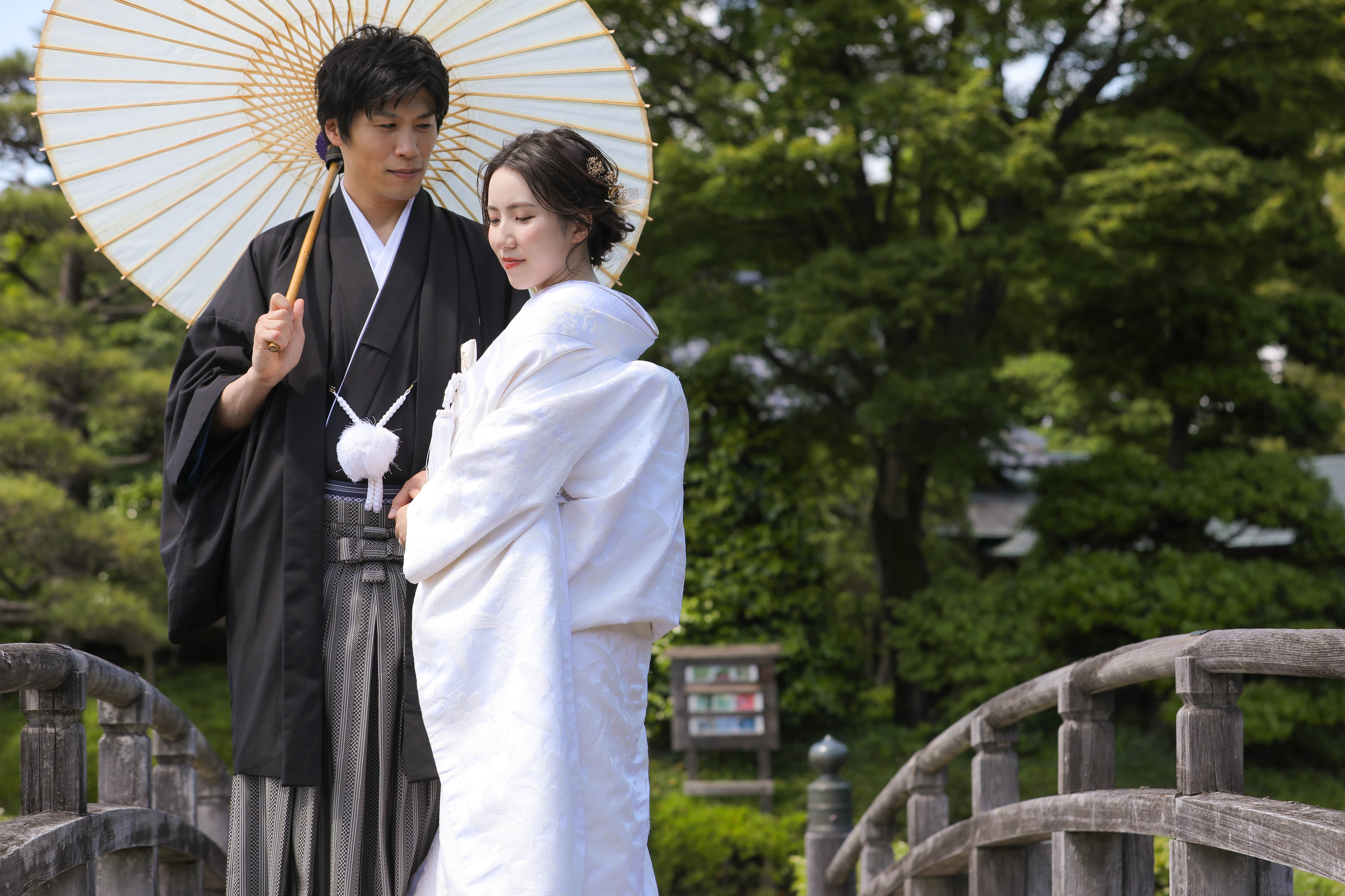 相合い傘ショットは和装の鉄板ショットです! お二人の身長差がいい感じですね^^