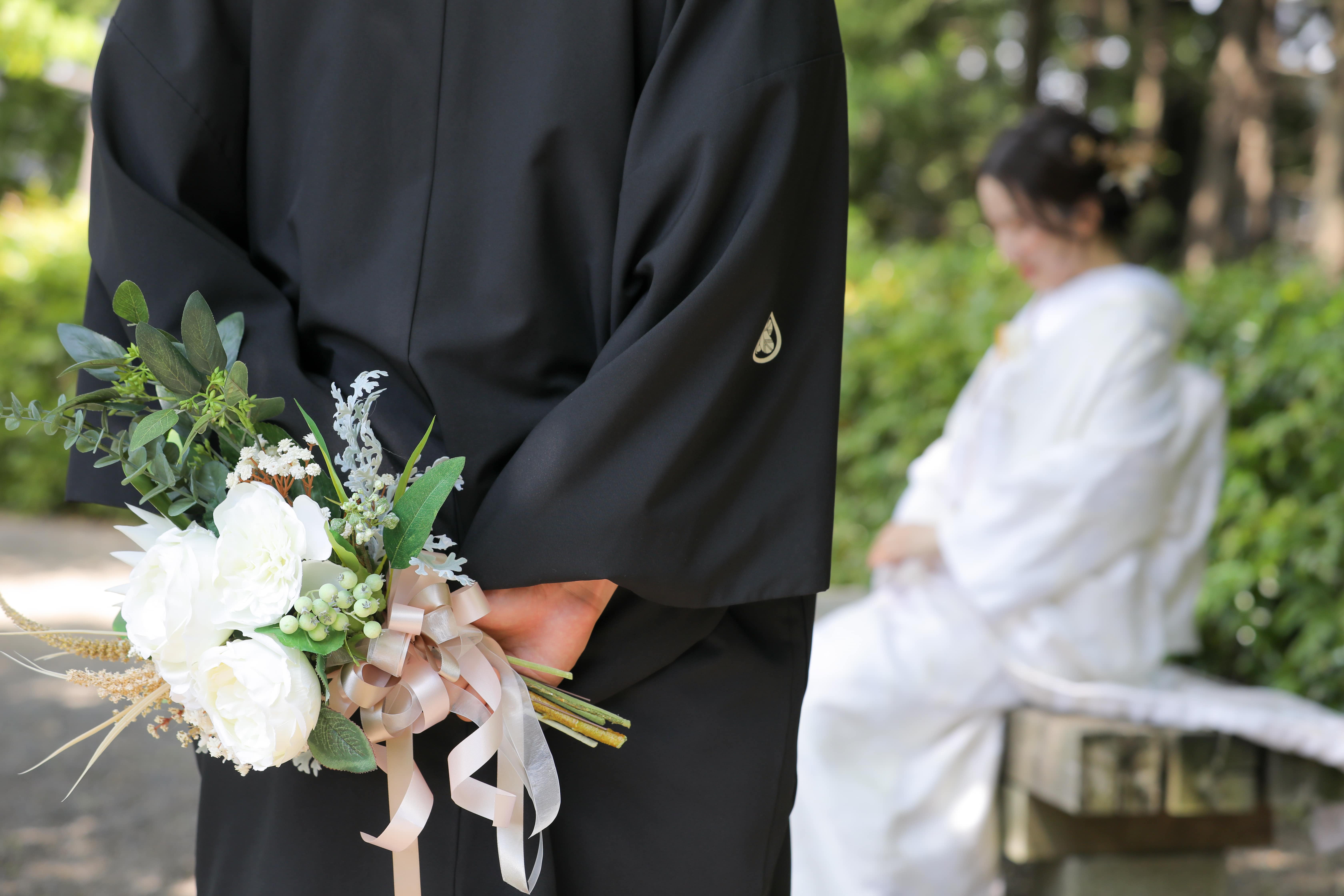 さっきのお写真と続いたお写真。実はご新郎様はご新婦様にお花を渡そうとしていたのですね! 写真にもストーリーを残せます^^