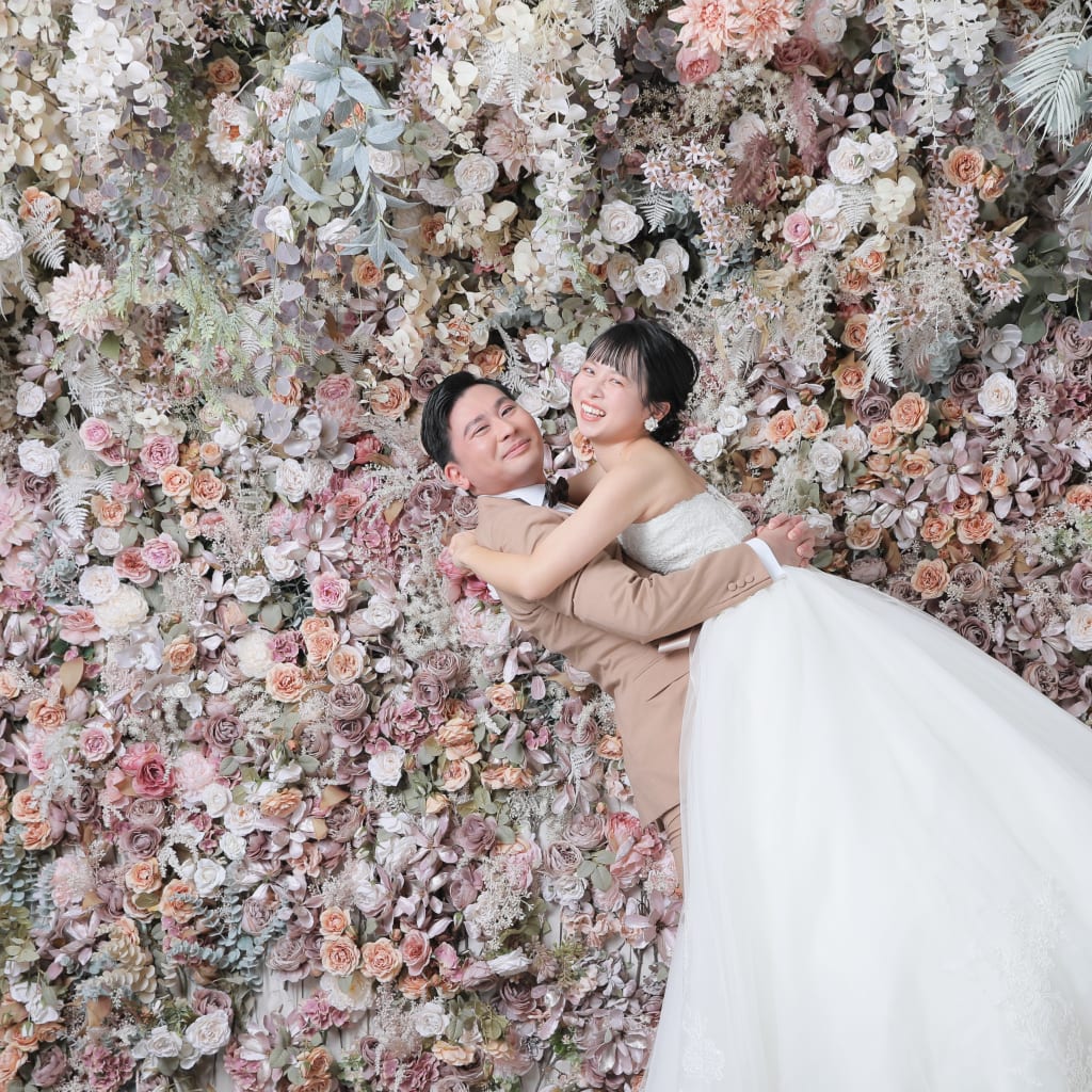 - 01 - バックハグ- ピンクの可愛いお花の壁の前でバックハグ!!とっても素敵!!