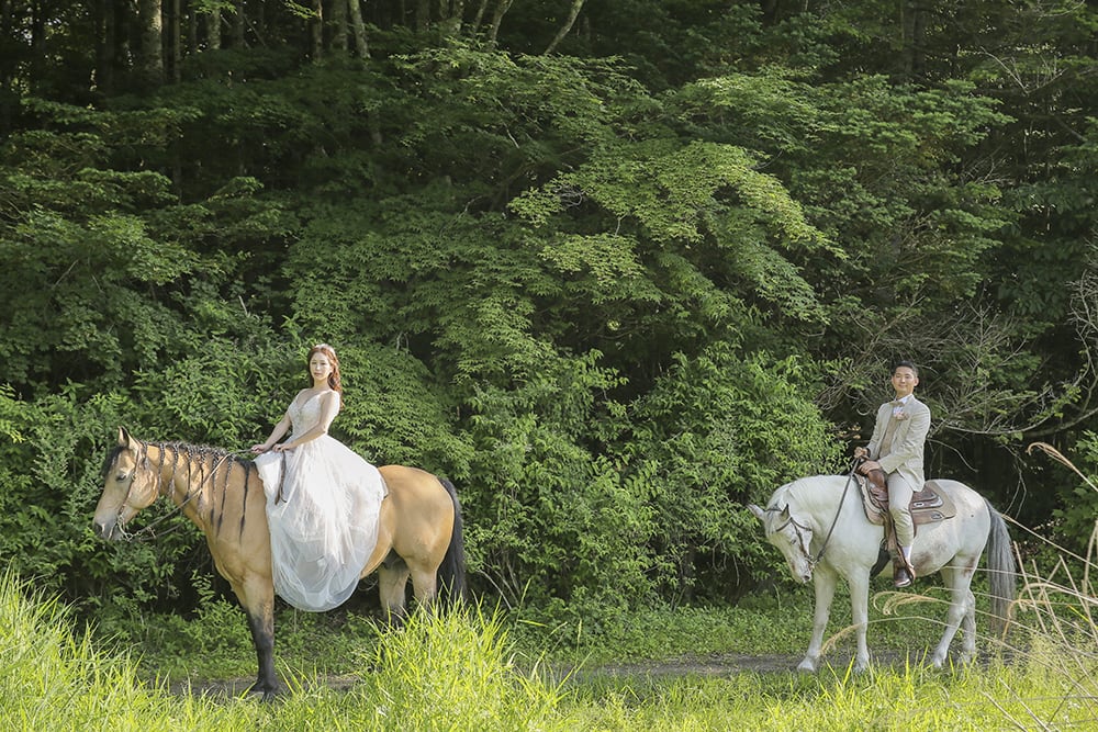 富士山麓での乗馬ウェディングフォトプラン