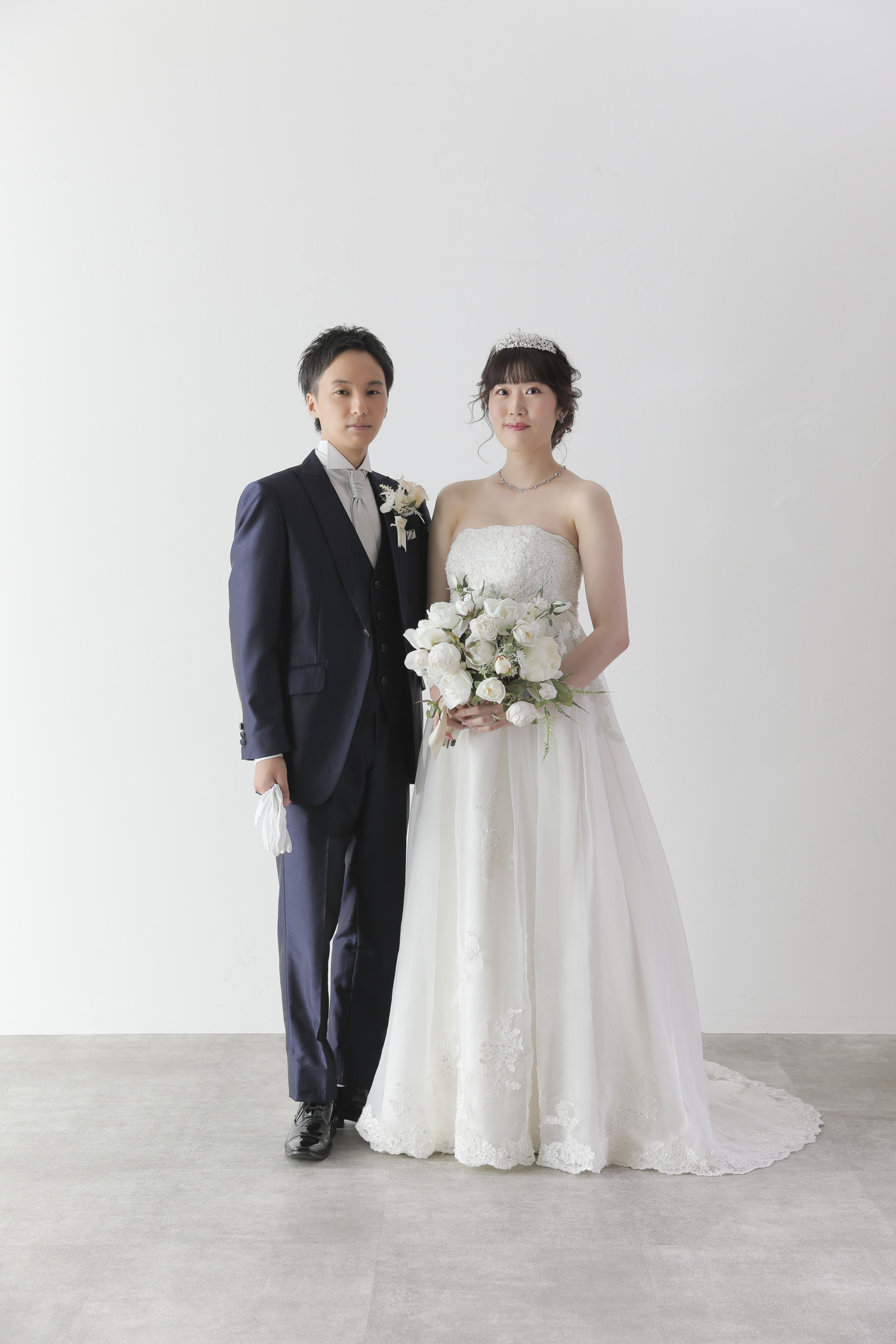 目線を伏し目にするとアイシャドウも綺麗に見えるので押し締めショットです!背景のバラも新婦様にマッチしていますね。