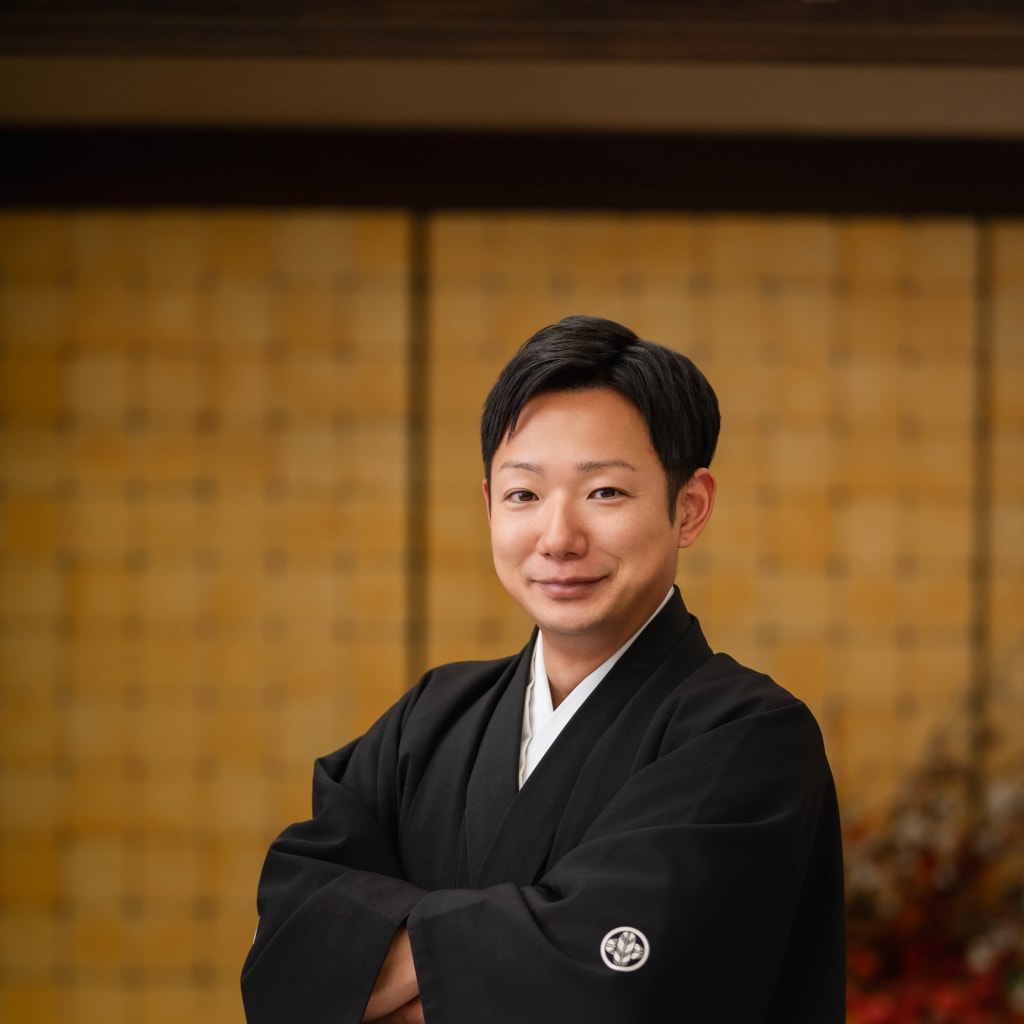 暖簾の前でフォーマルポーズで撮影!!キリッと決まっておりました!!