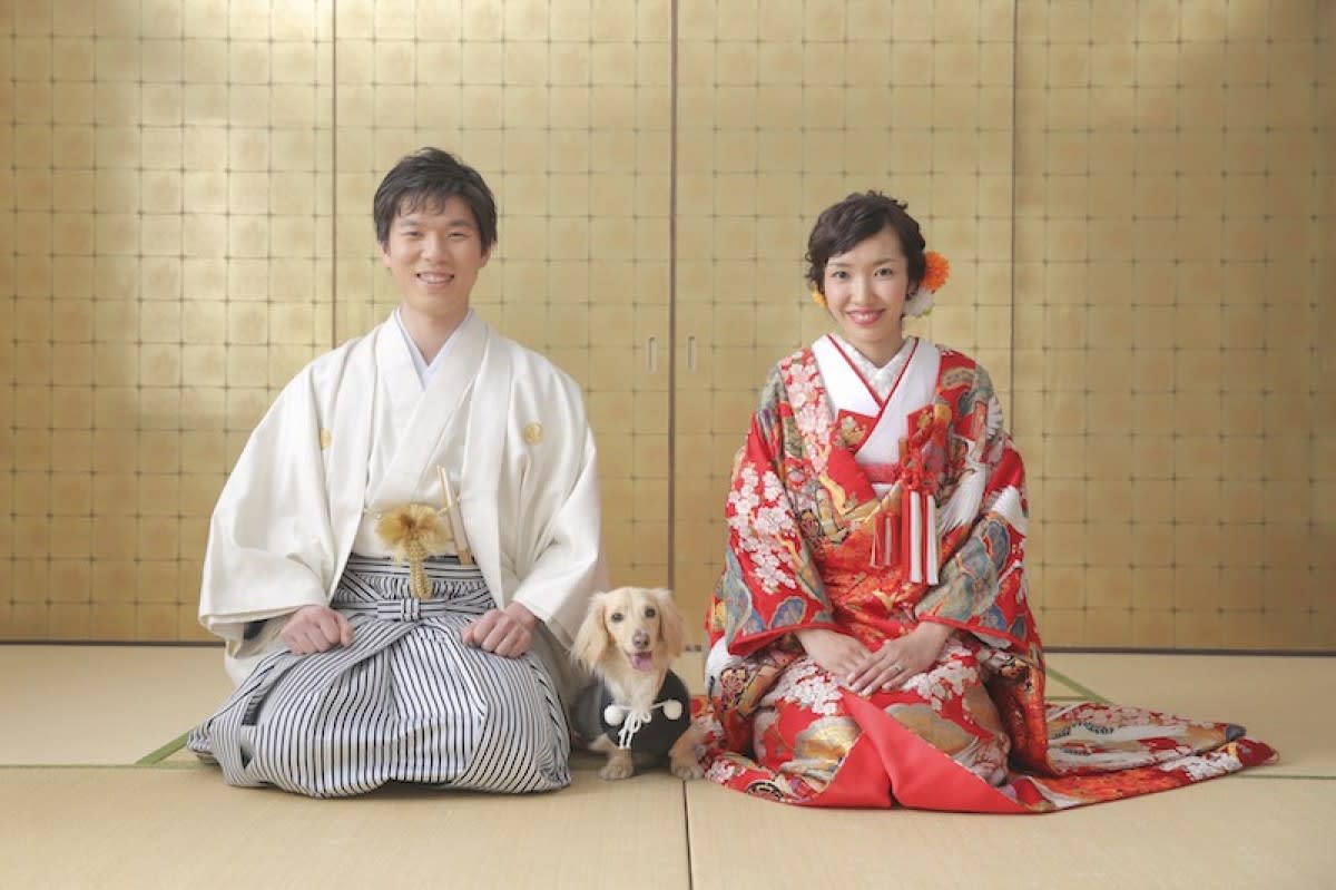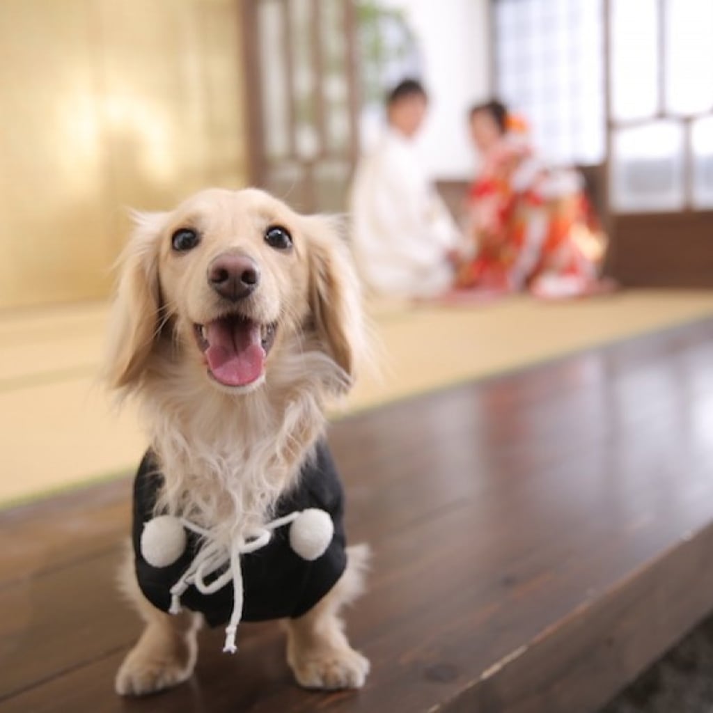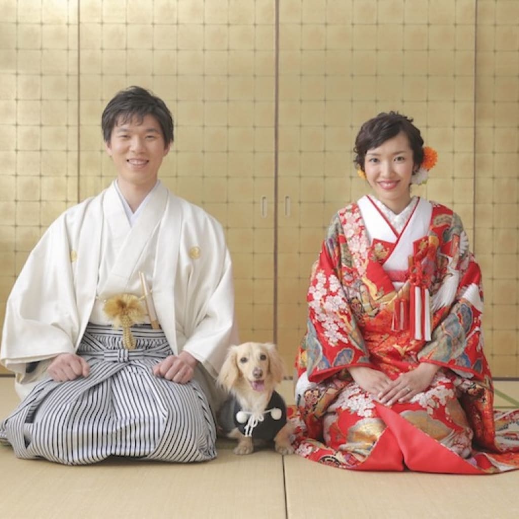 新郎新婦様の撮影と同時にワンちゃんも紋付袴に着替えて新郎新婦様と一緒に楽しく撮影させて頂きました!!