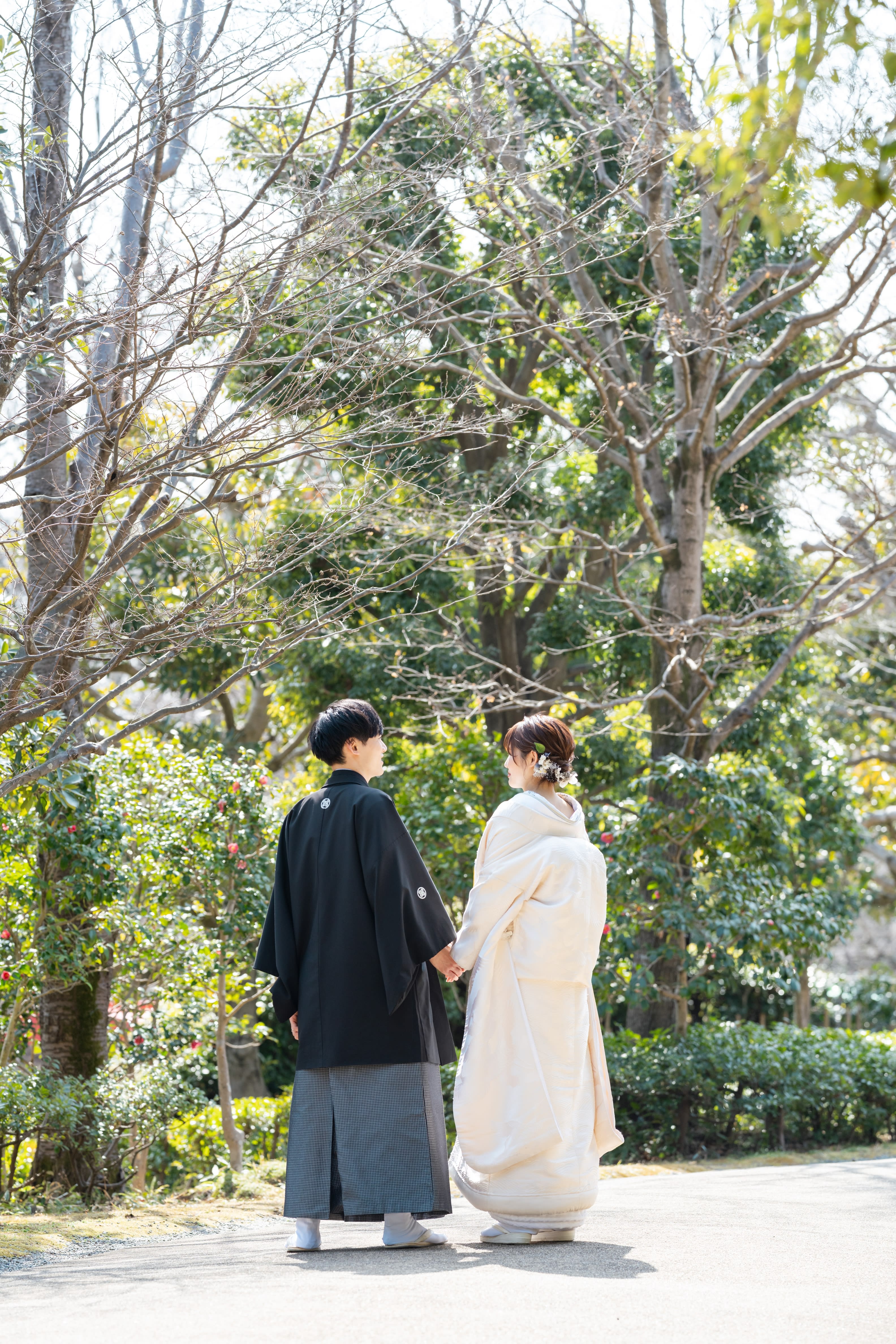赤に近い濃いピンクや白色の梅など、紅白のおめでたい雰囲気が婚礼に合います◎