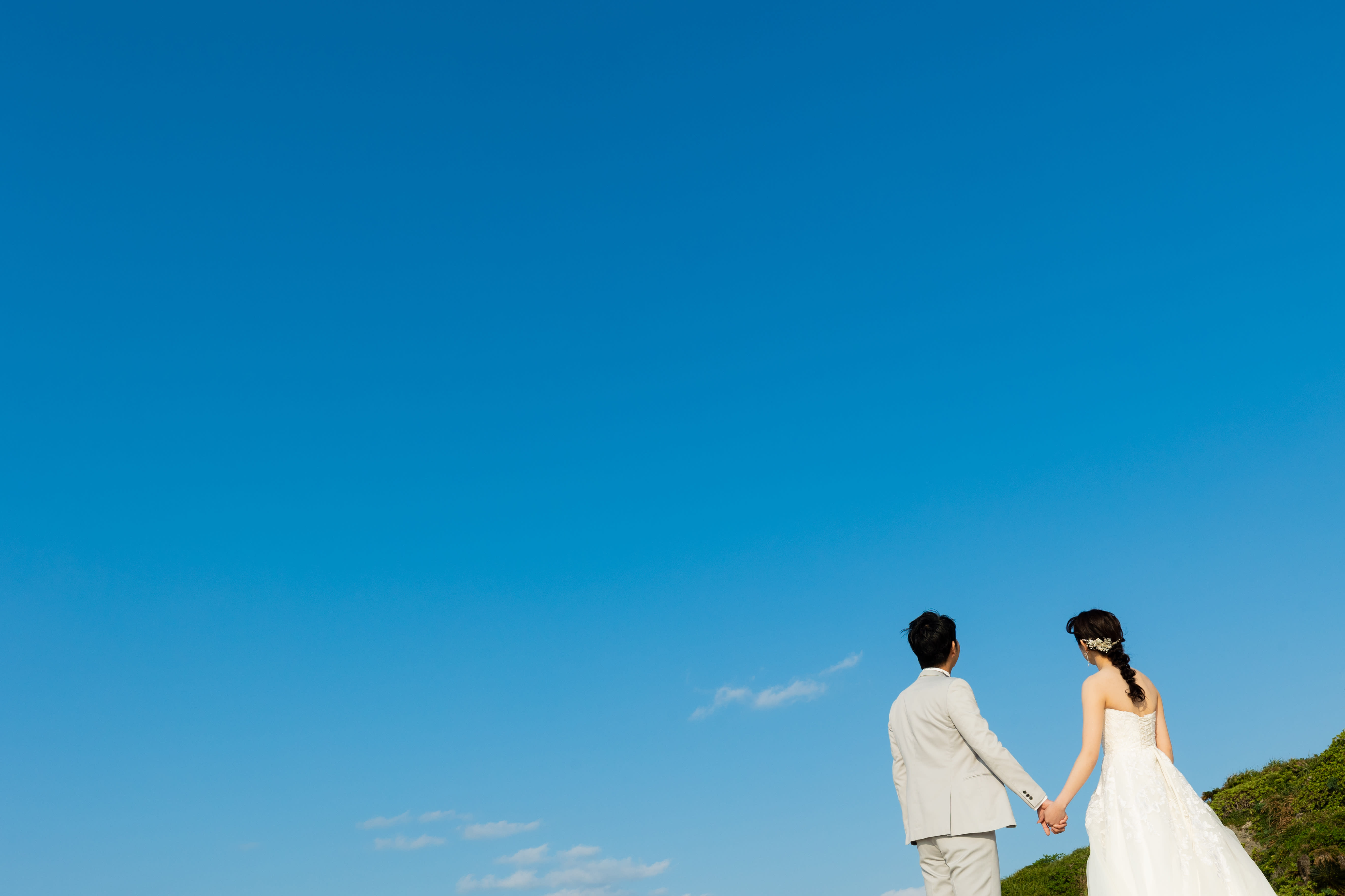 瀬底ビーチといえばなシルエット写真! 空も海もお二人もシンプルに、それでいて綺麗に。