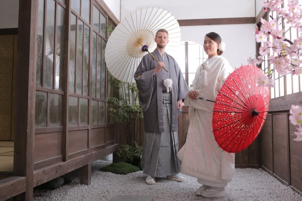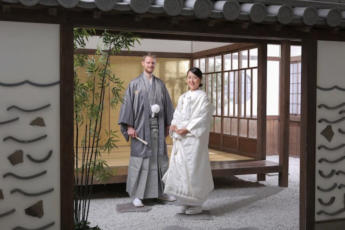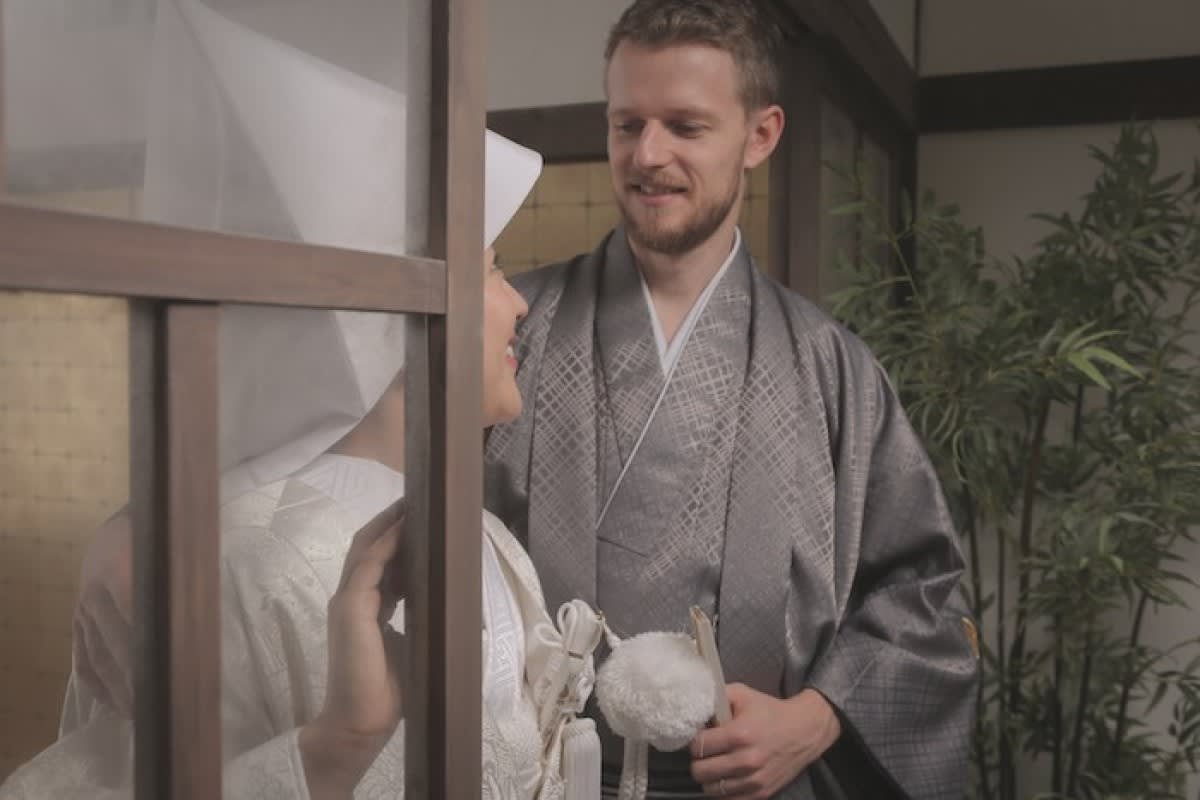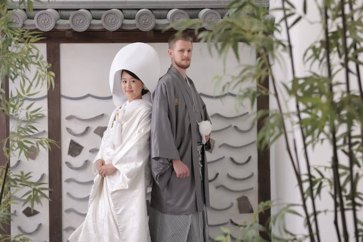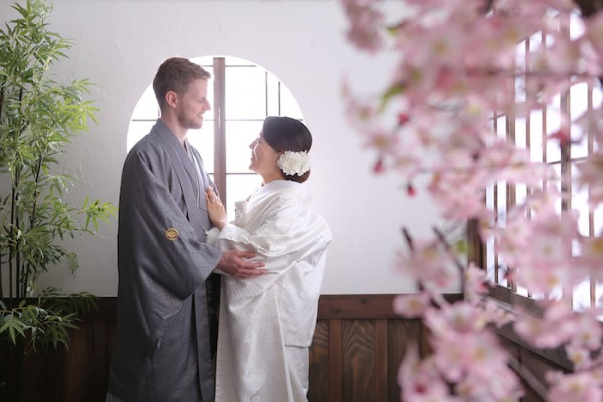 お写真のお二人は新婦様のご要望で、日本人らしく和装写真を残しておきたい!と新郎様とドイツから来日、旅行の合間に撮影にいらっしゃいました.*・