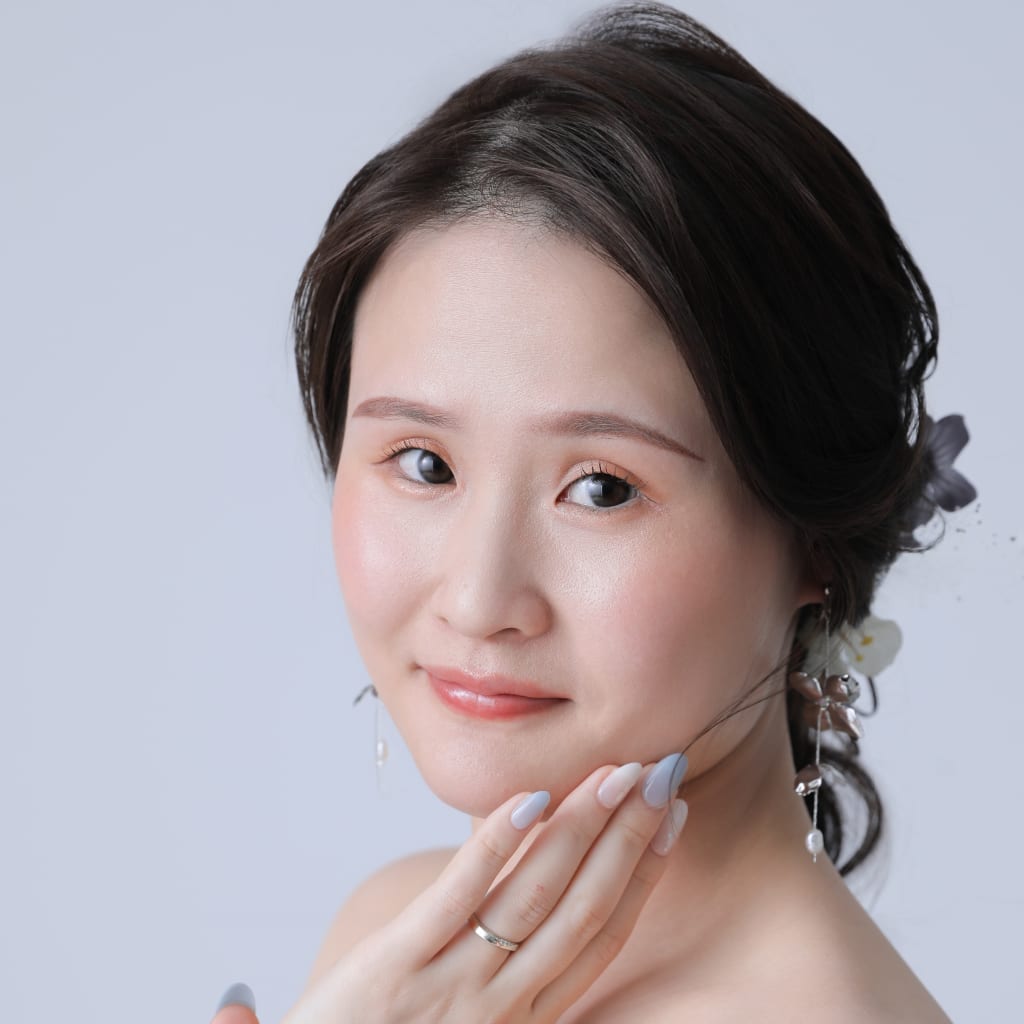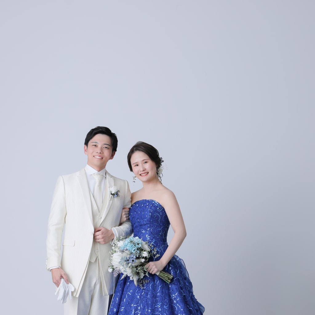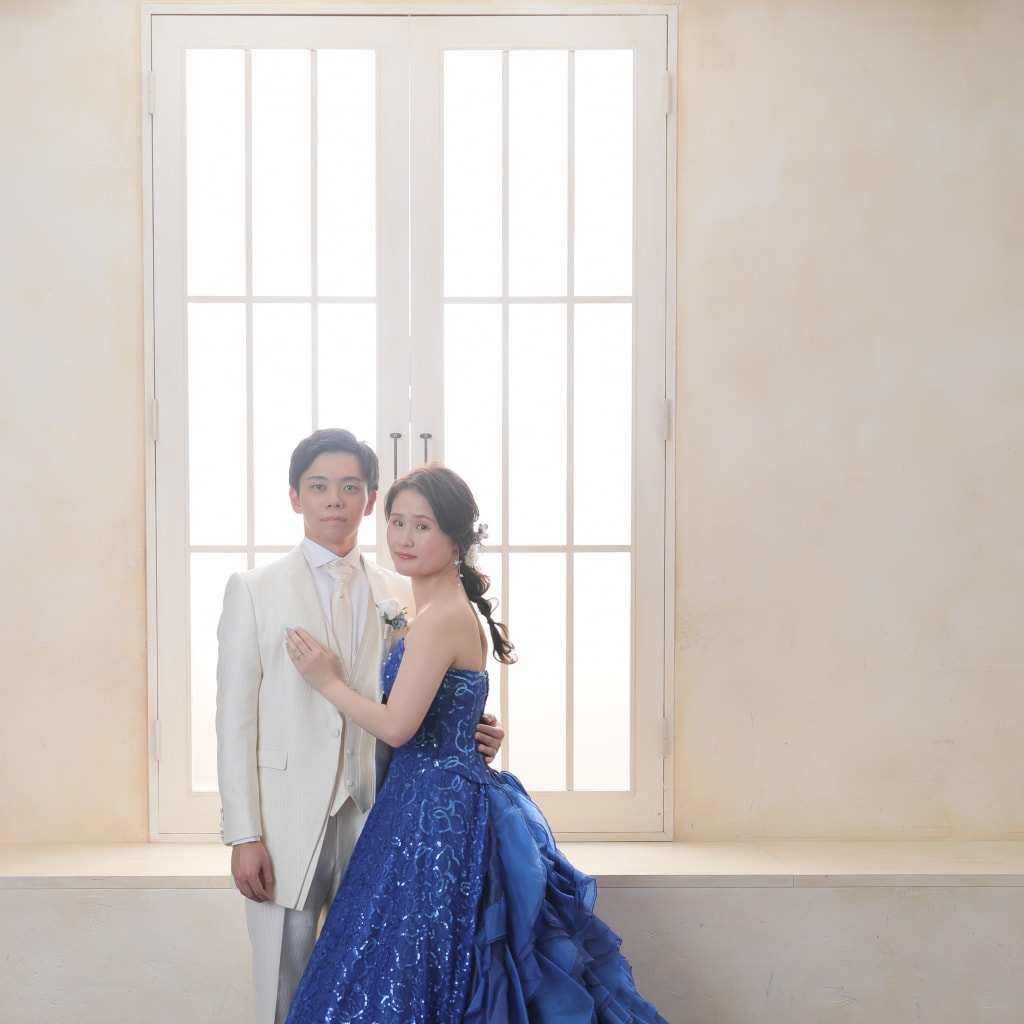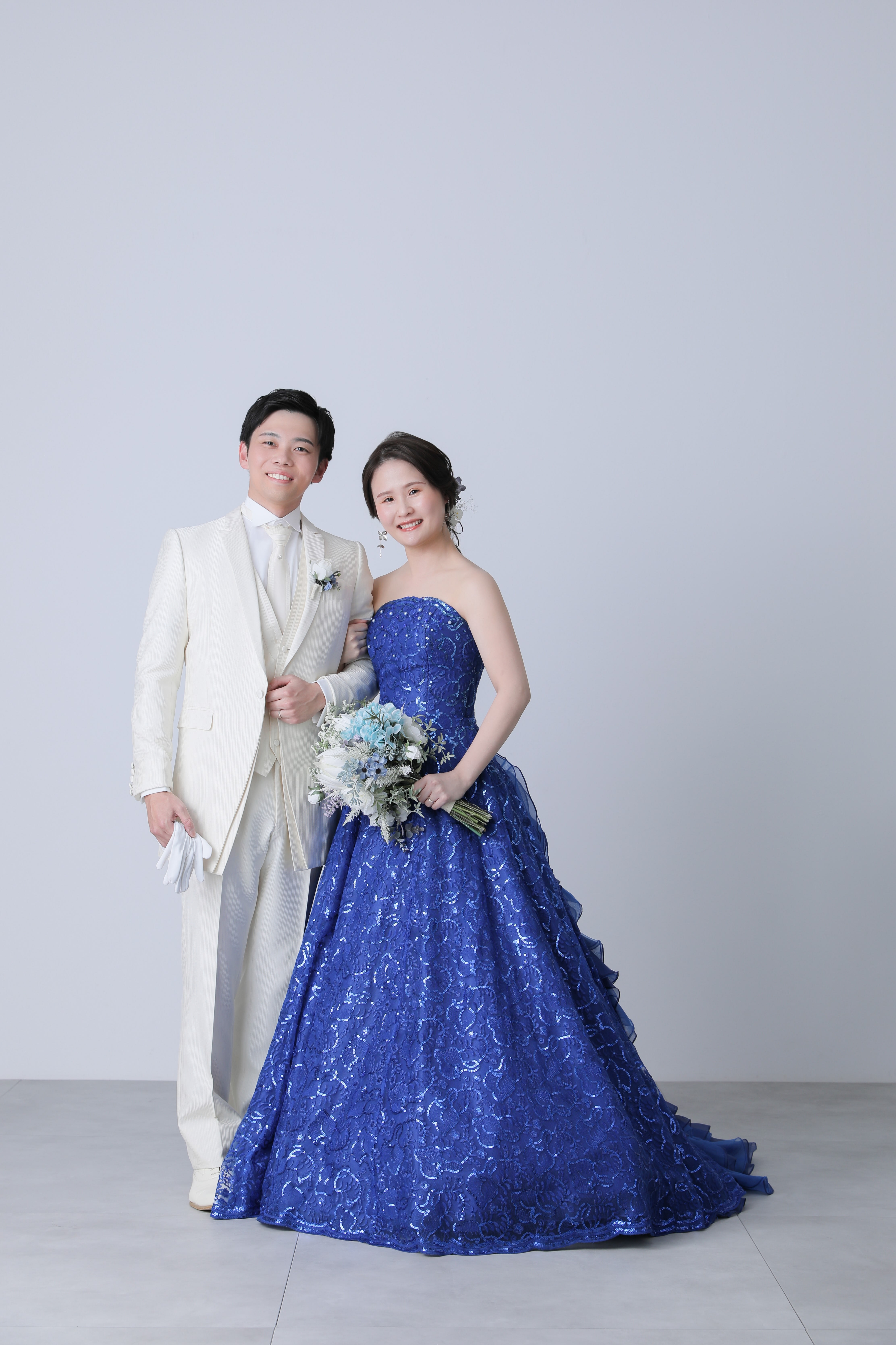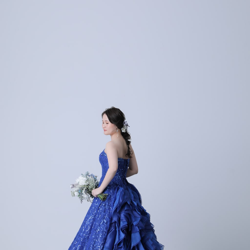 ブルーのカラードレスを着用して、おしゃれな雰囲気で撮影しました!