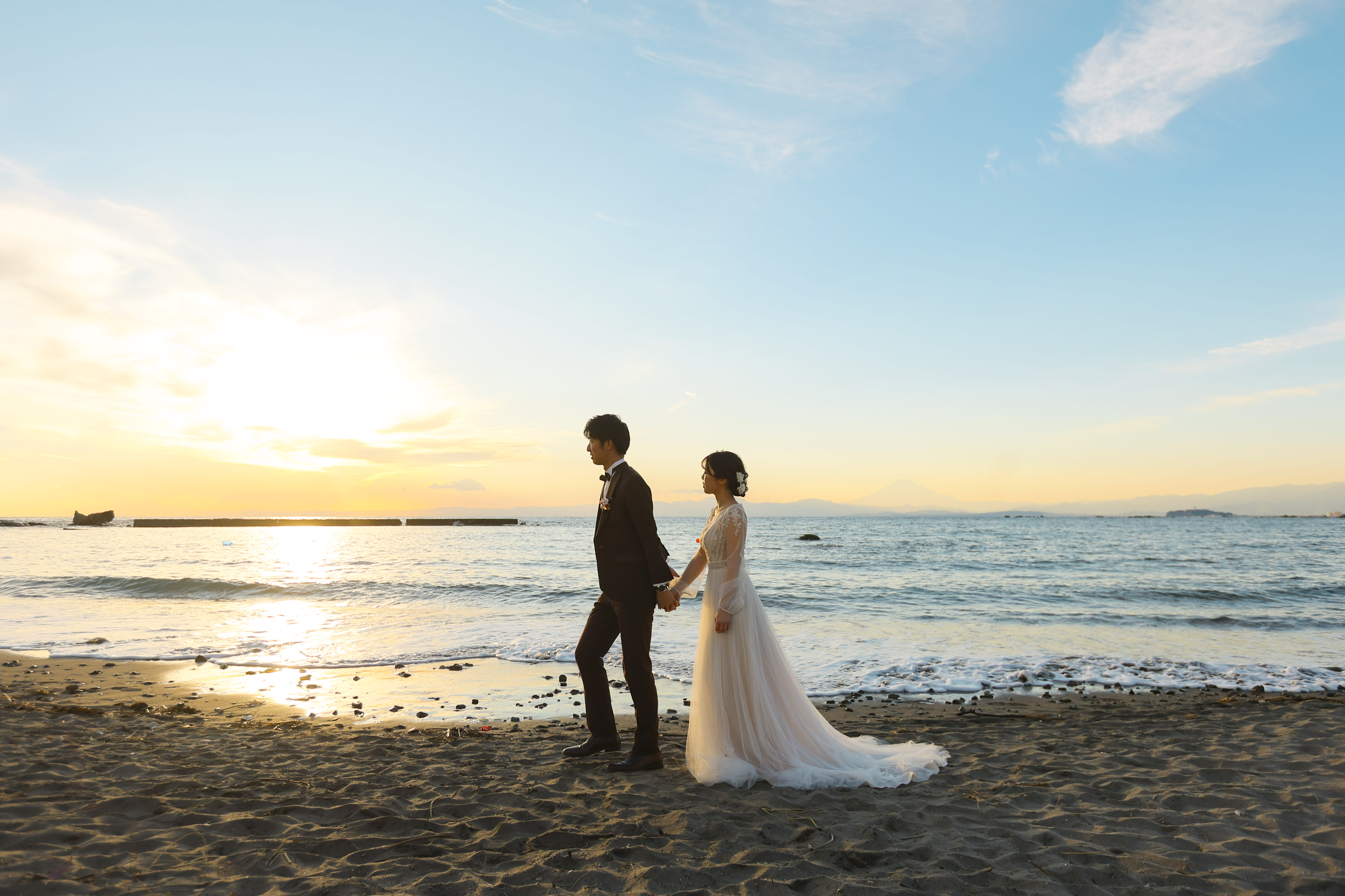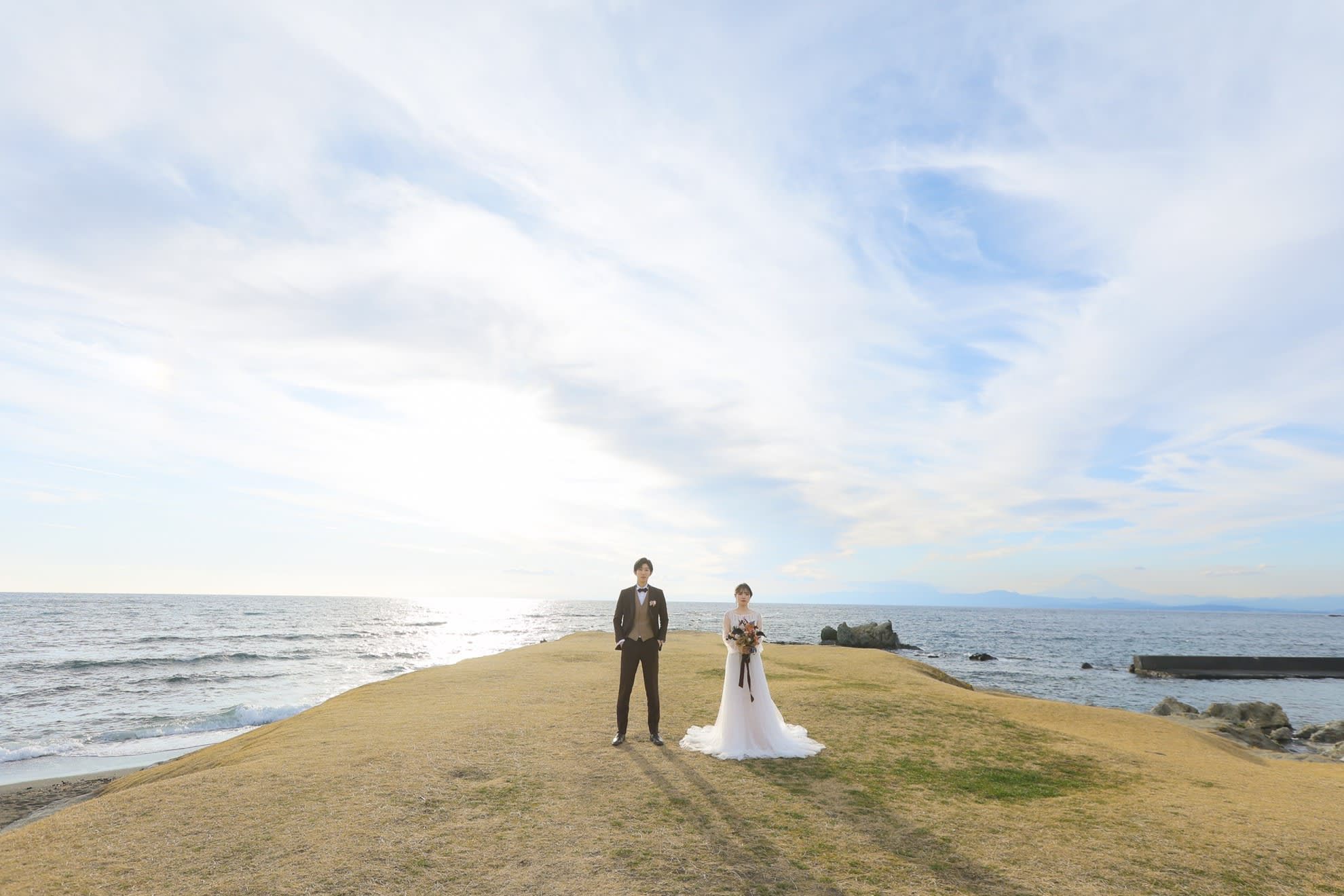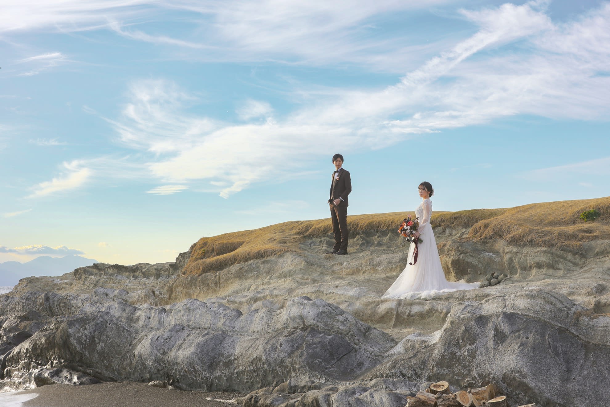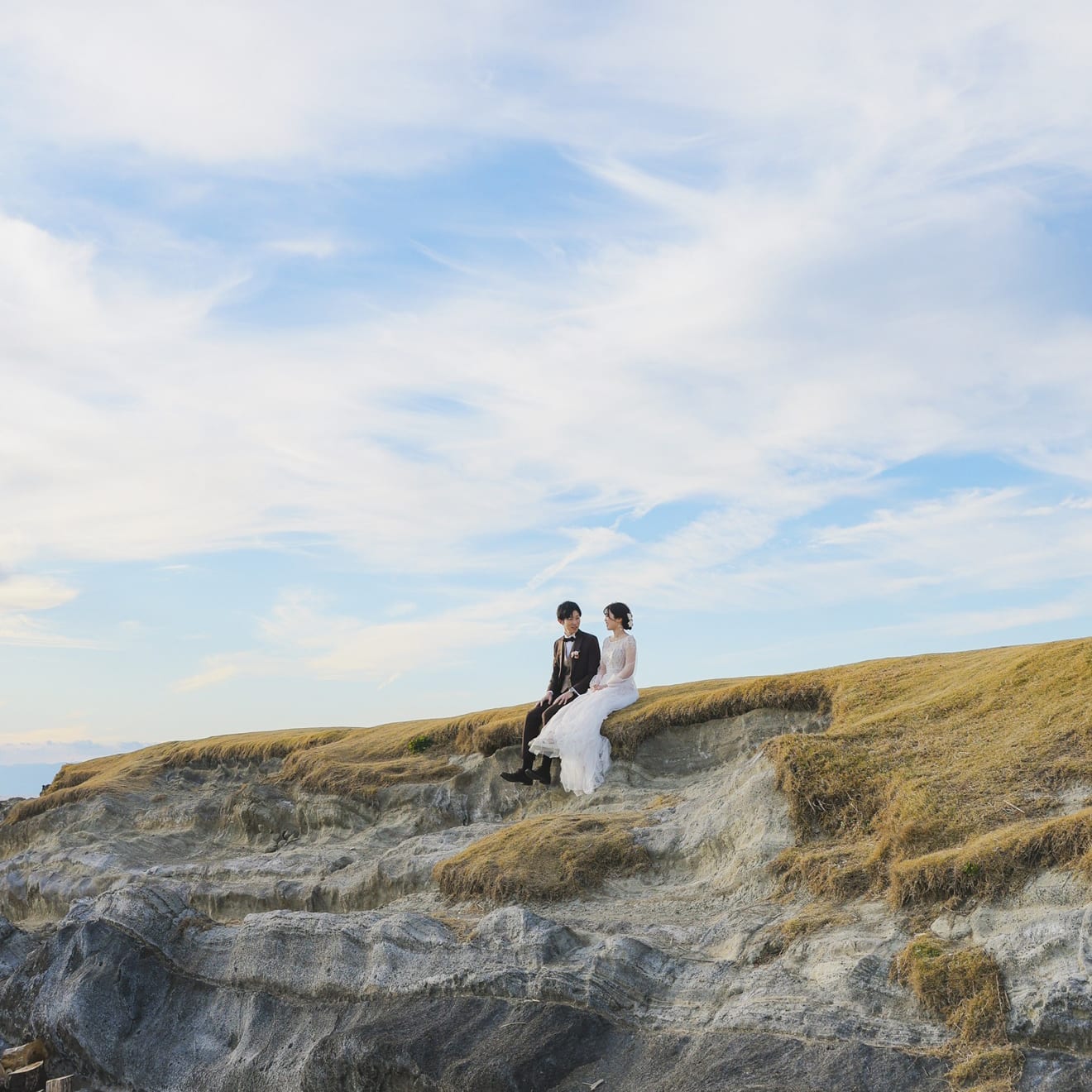 空も青くて、ドレス姿がより鮮やかに見えますね