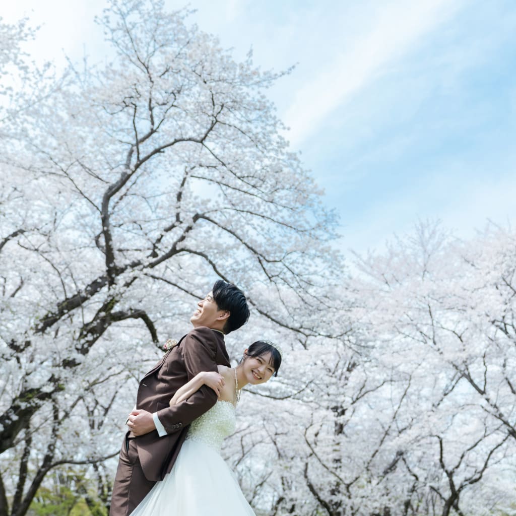 桜が満開の中撮影をしたお二人!どこで撮影しても綺麗なお写真になりました!