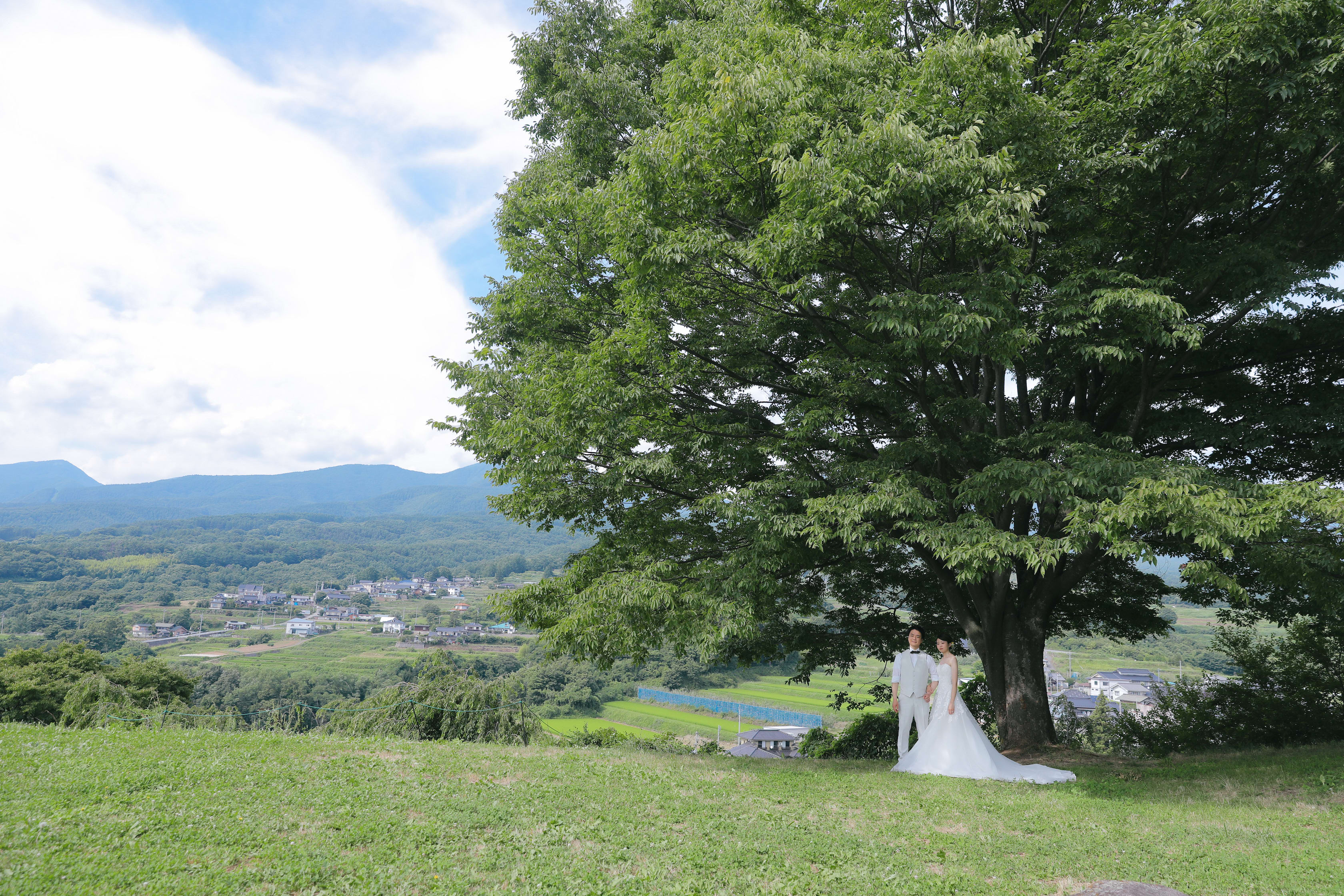 飯綱山公園は山の上の方にあることもあり、爽やかな風が通り抜けていきます!新郎様もジャケットを脱いで軽やかに撮影していきました◎