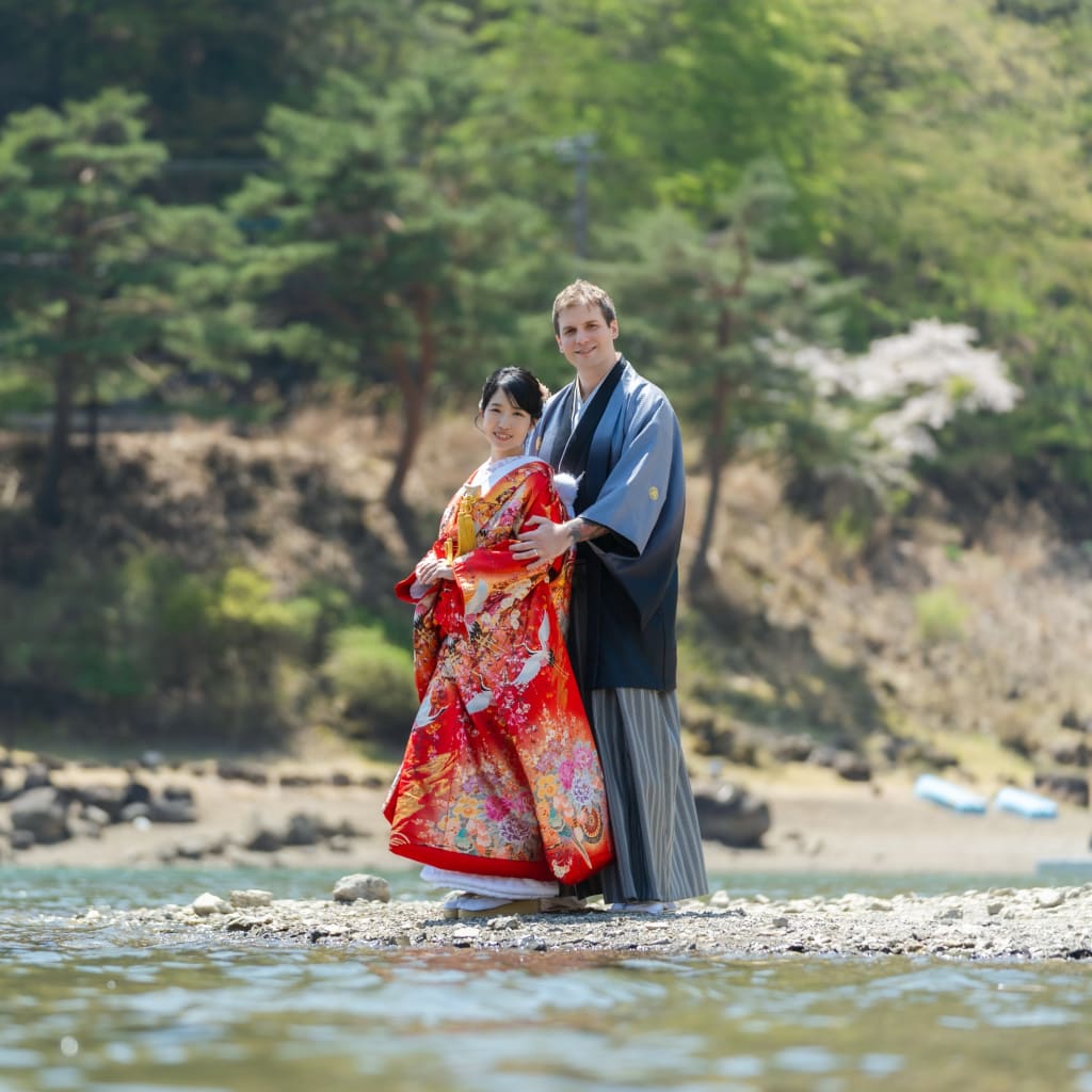 和装で桜と富士山ロケーション | デコルテフォトグラフィー | 前撮り・フォトウェディング