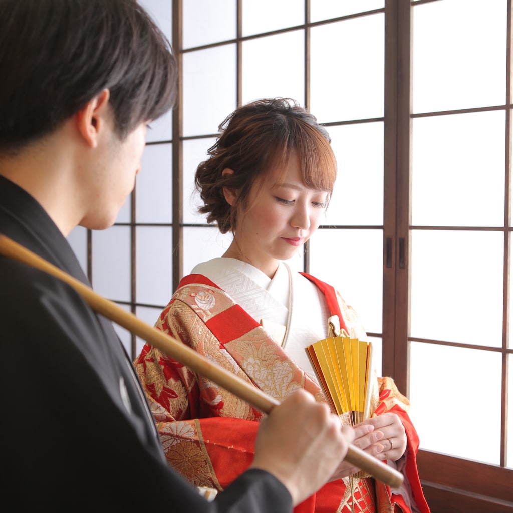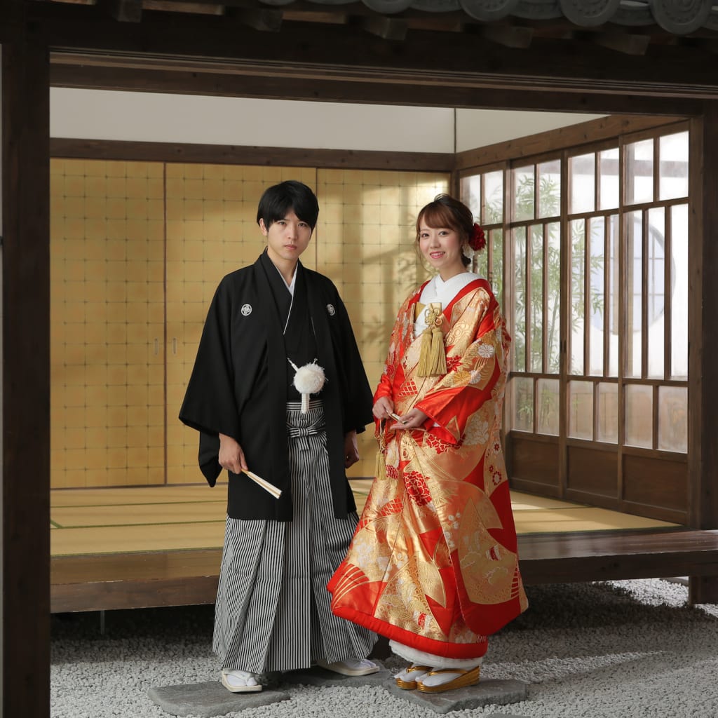 せっかく和装で撮るなら、背景もこだわりたいというお二人に。