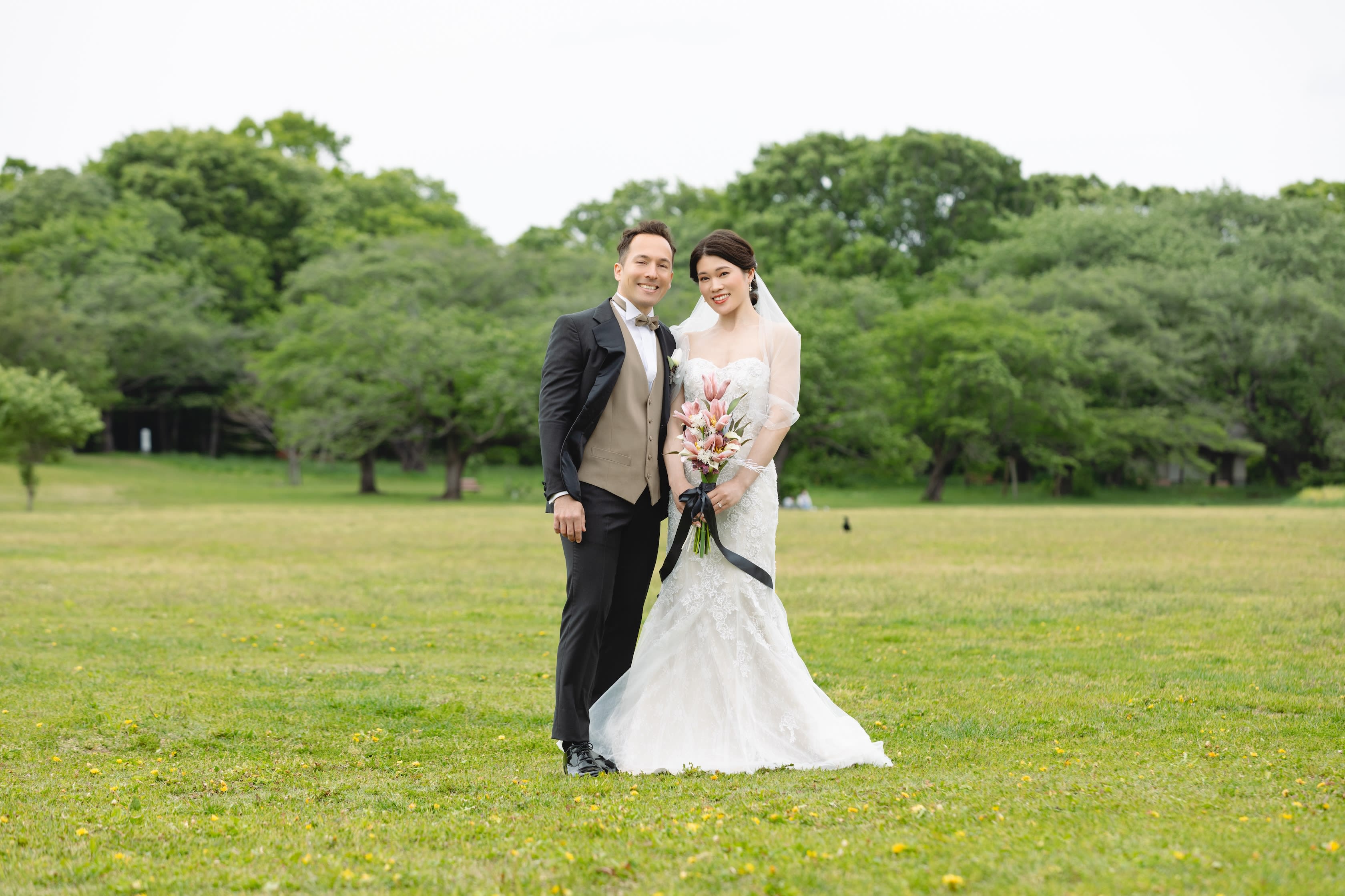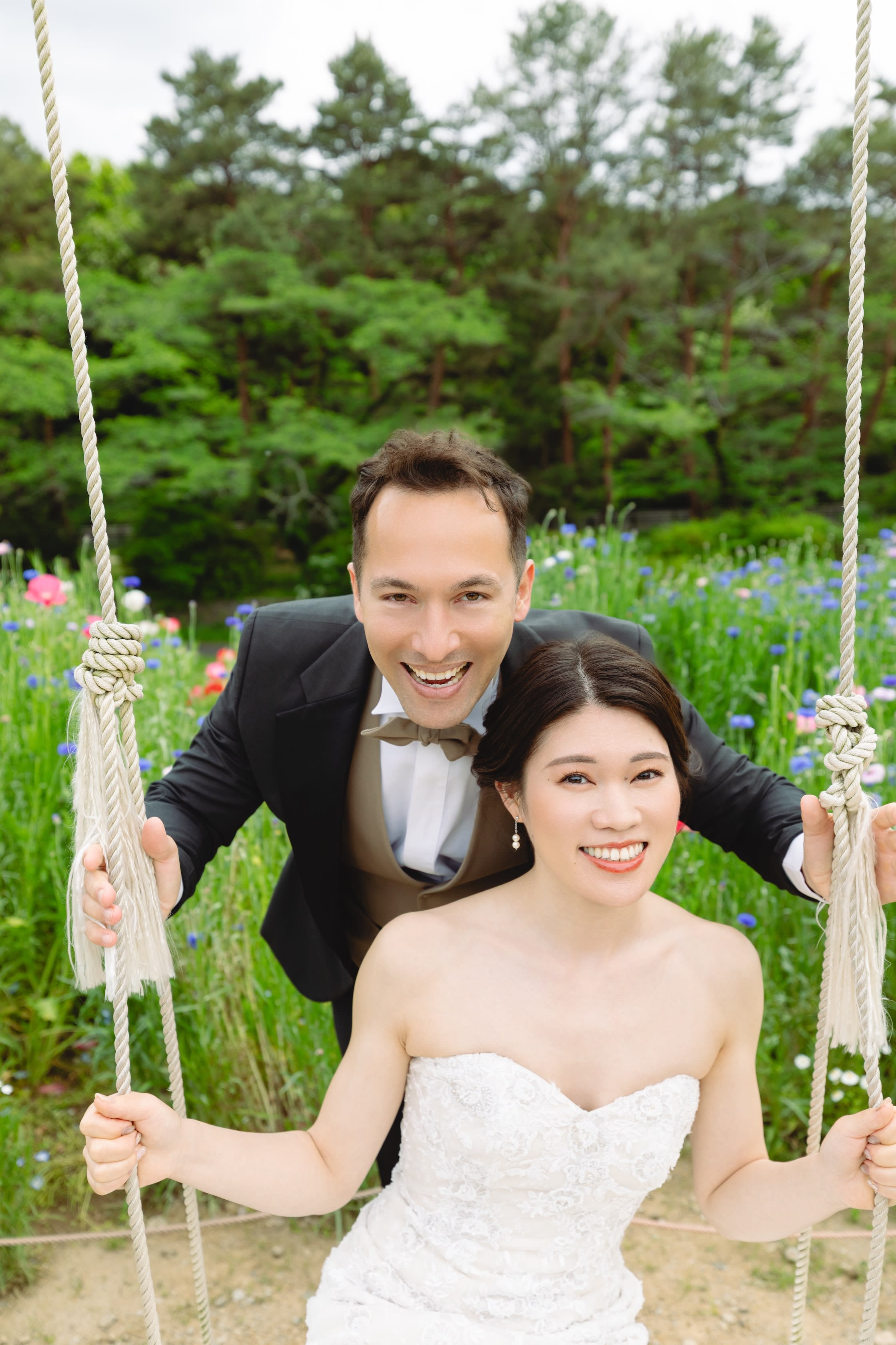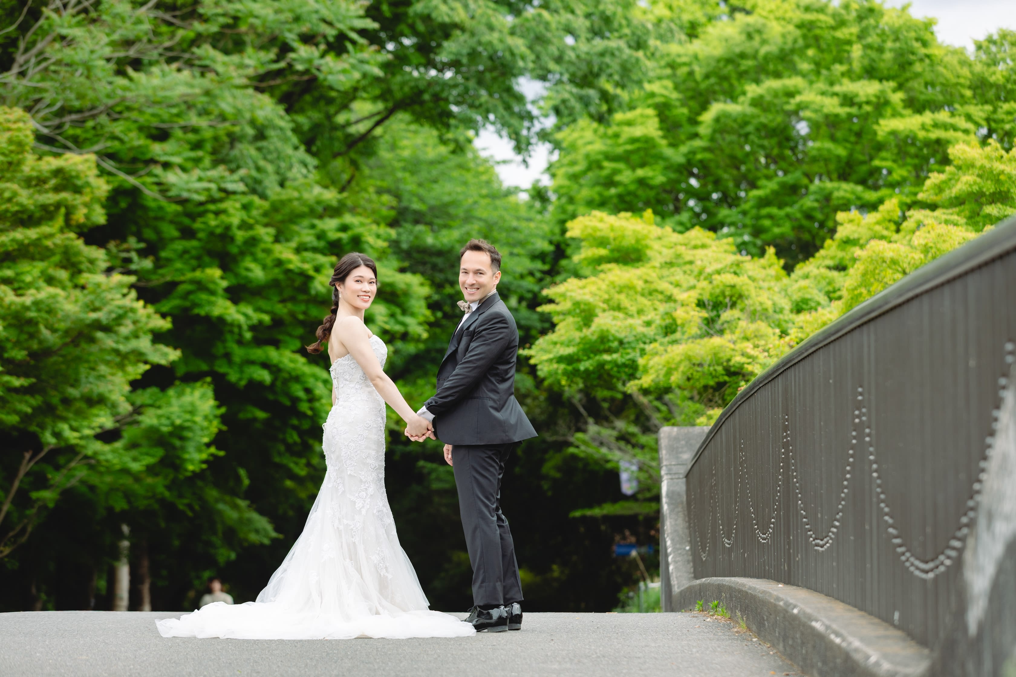 場所を変えて、ブーケガーデンにて撮影。 お二人の素の笑顔がとても素敵です。