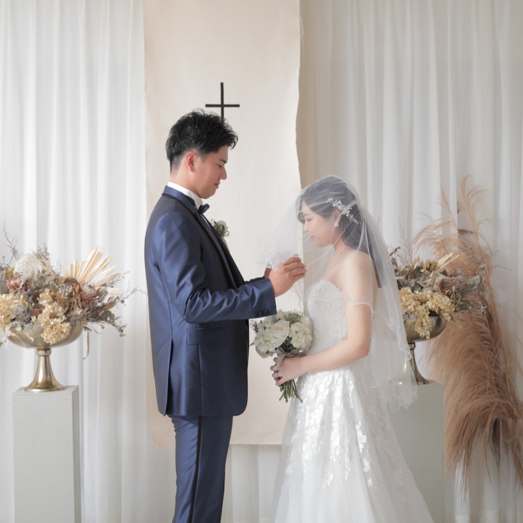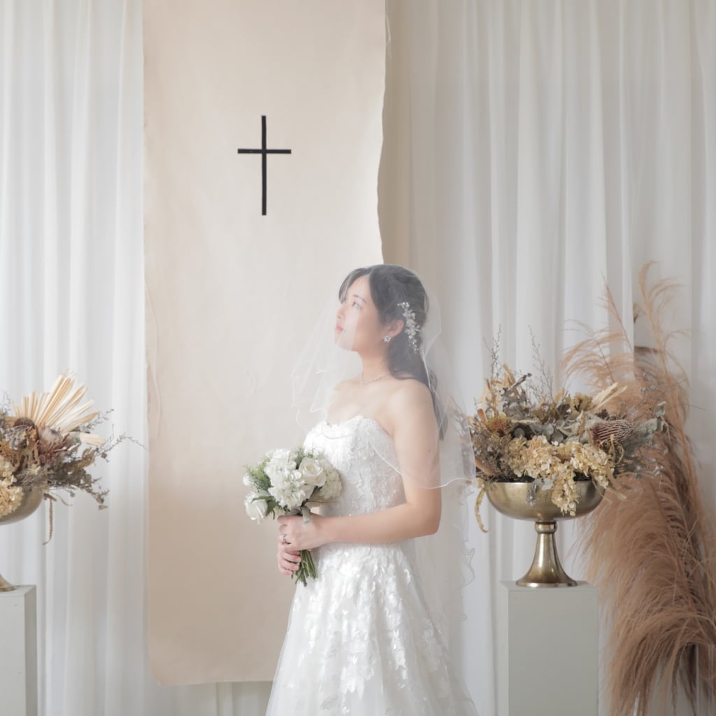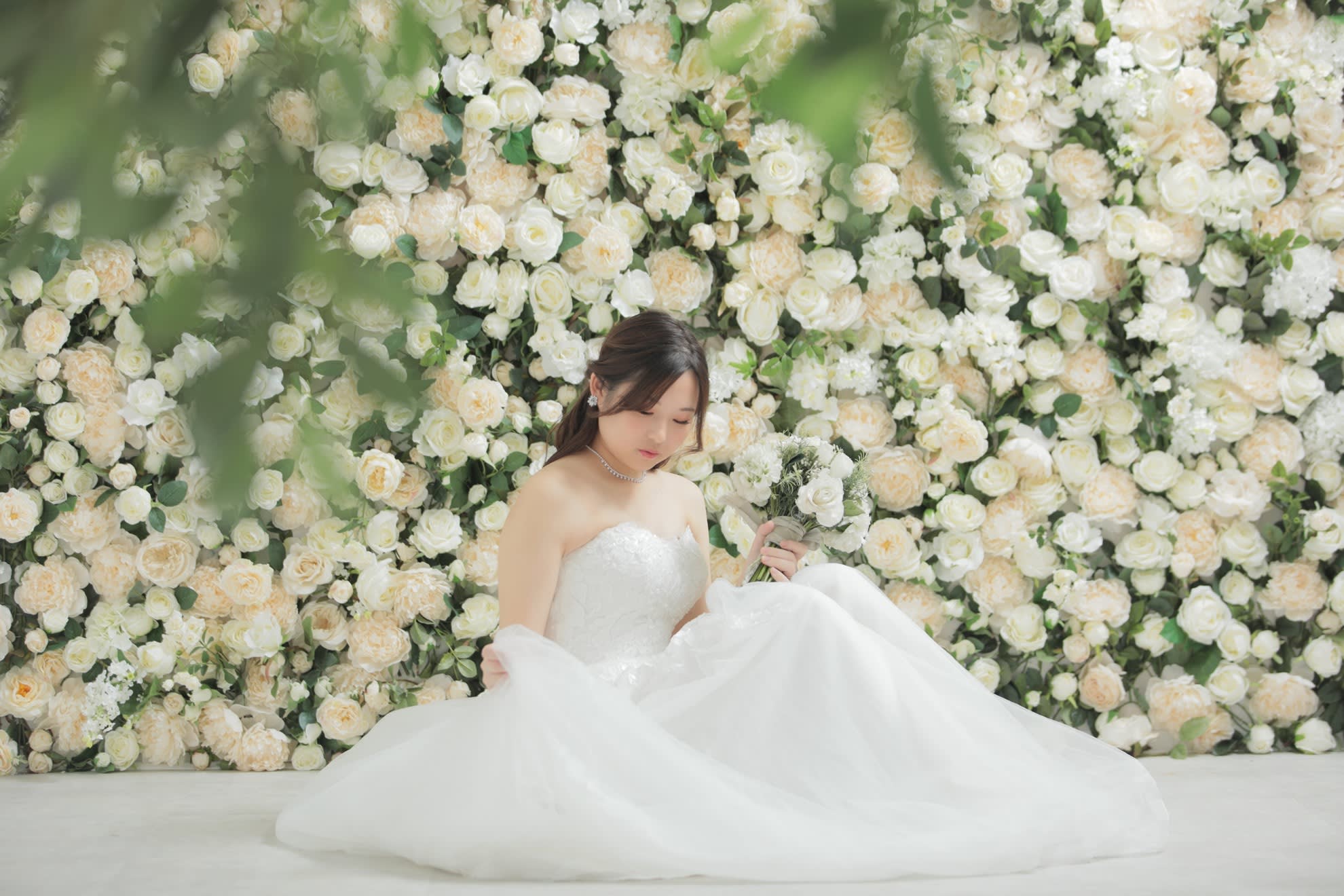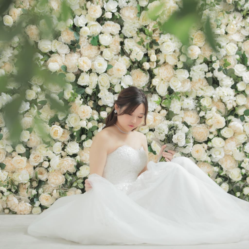 一面お花の壁が登場!ハウススタジオで撮影する洋装ウェディングフォトプラン