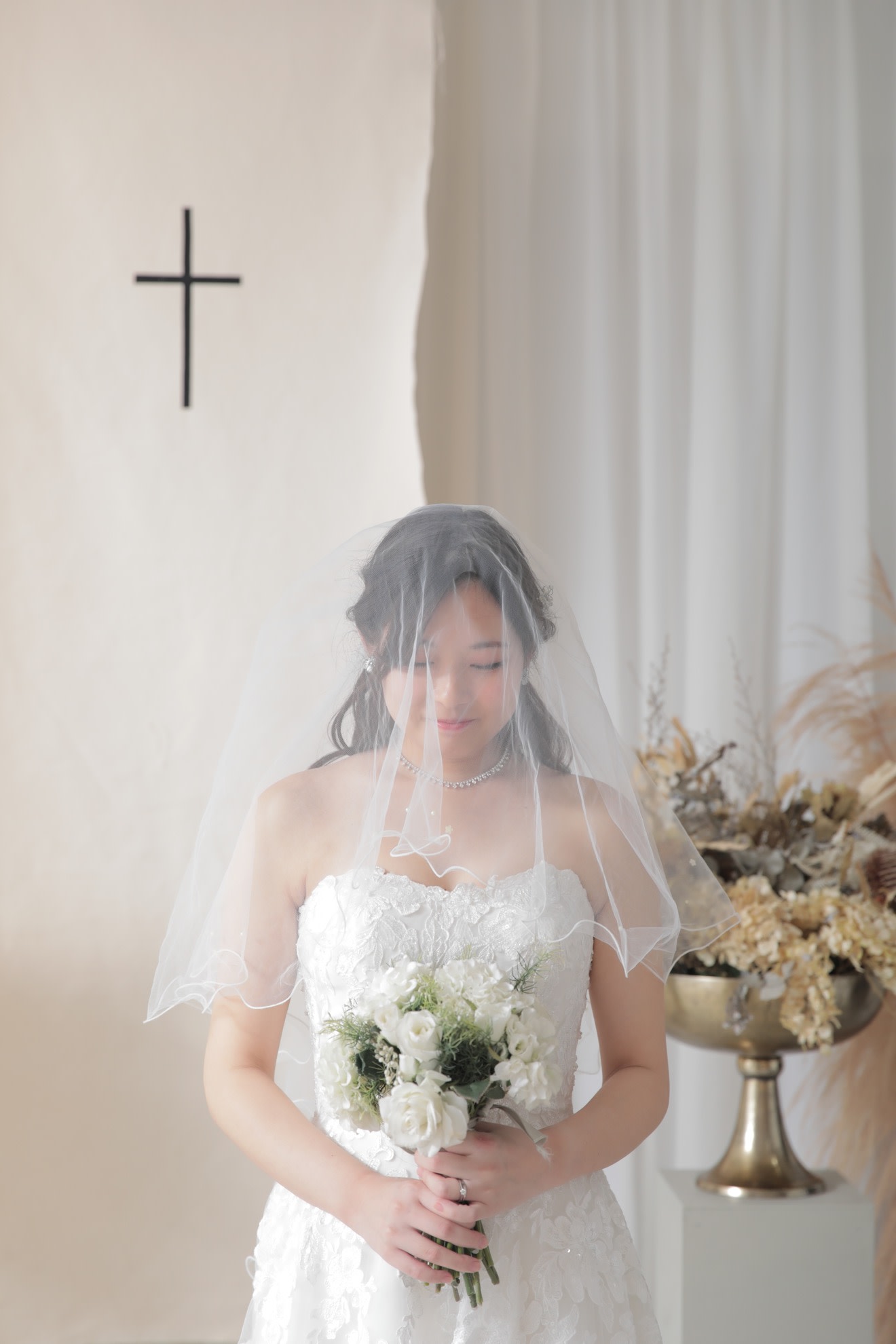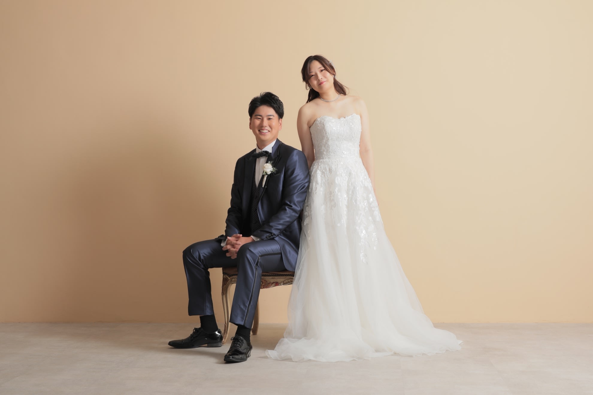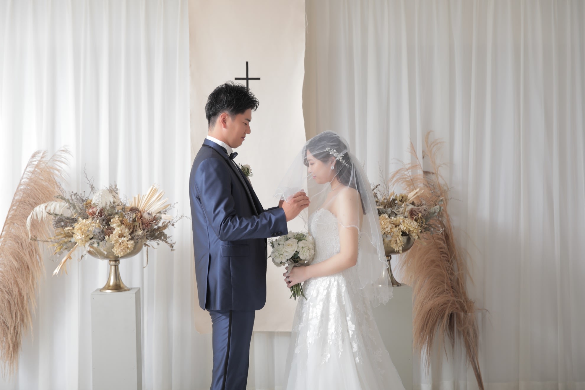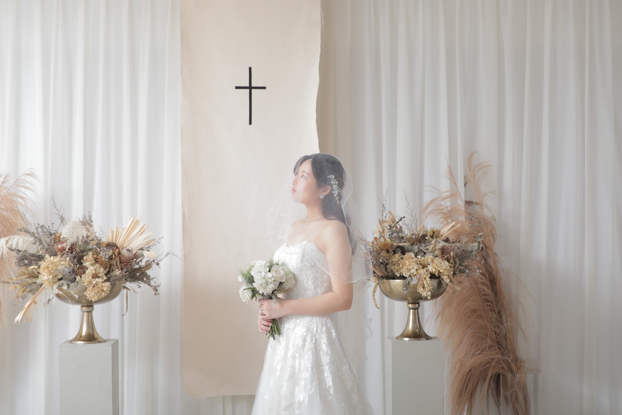 一面お花の壁が登場!ハウススタジオで撮影する洋装ウェディングフォトプラン