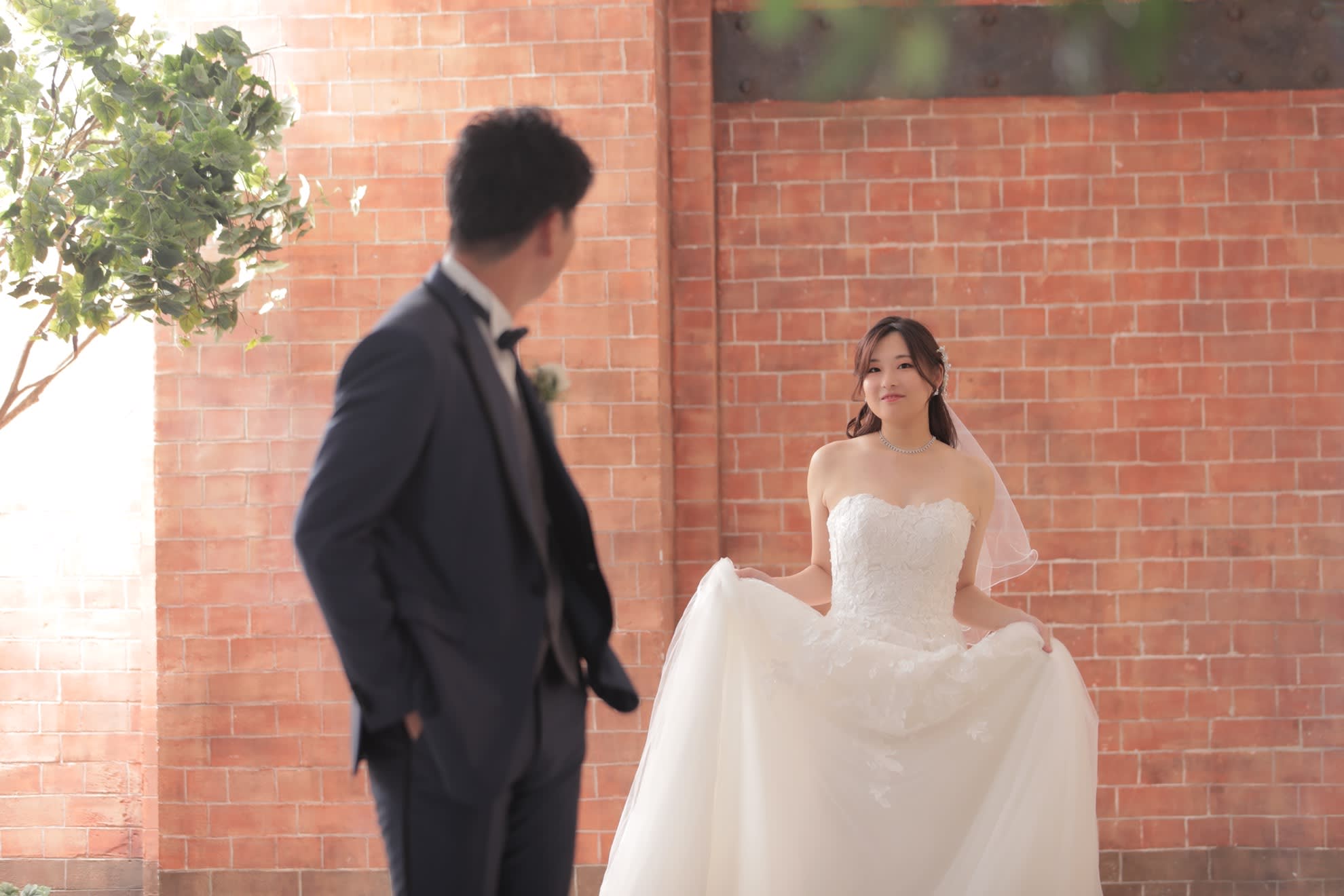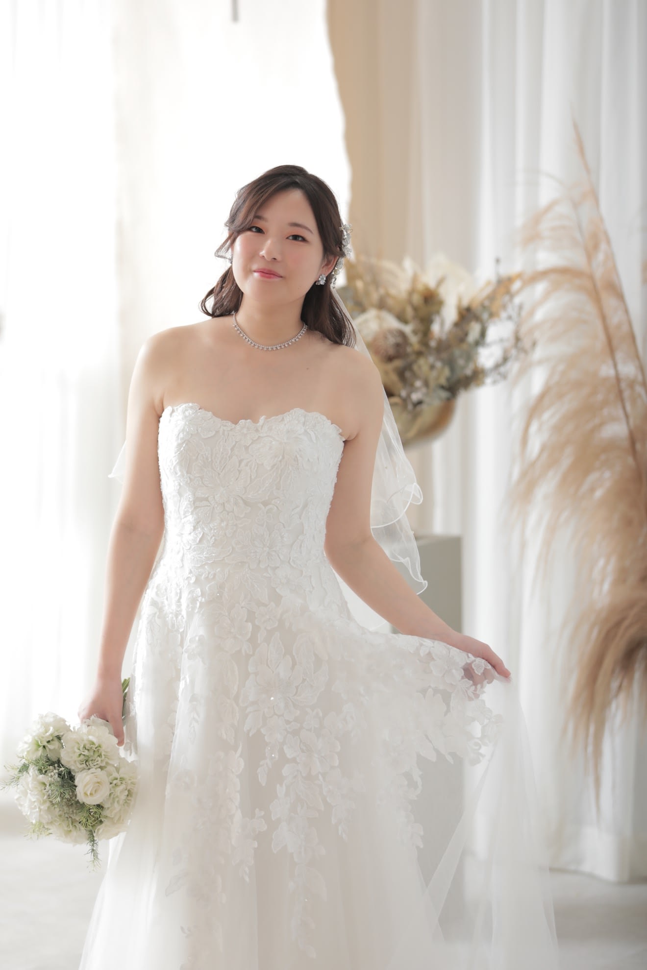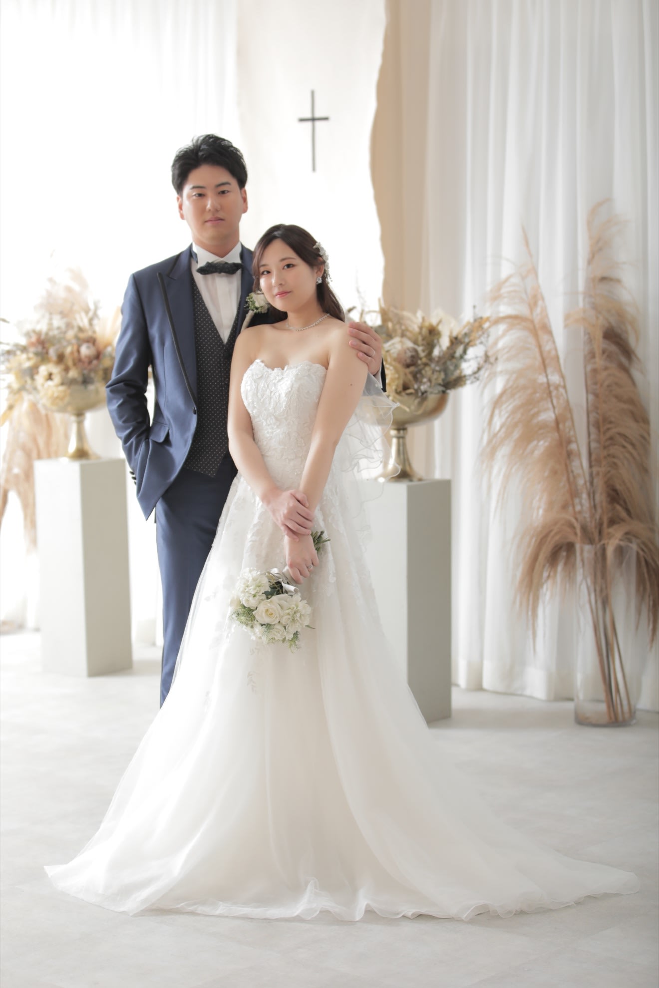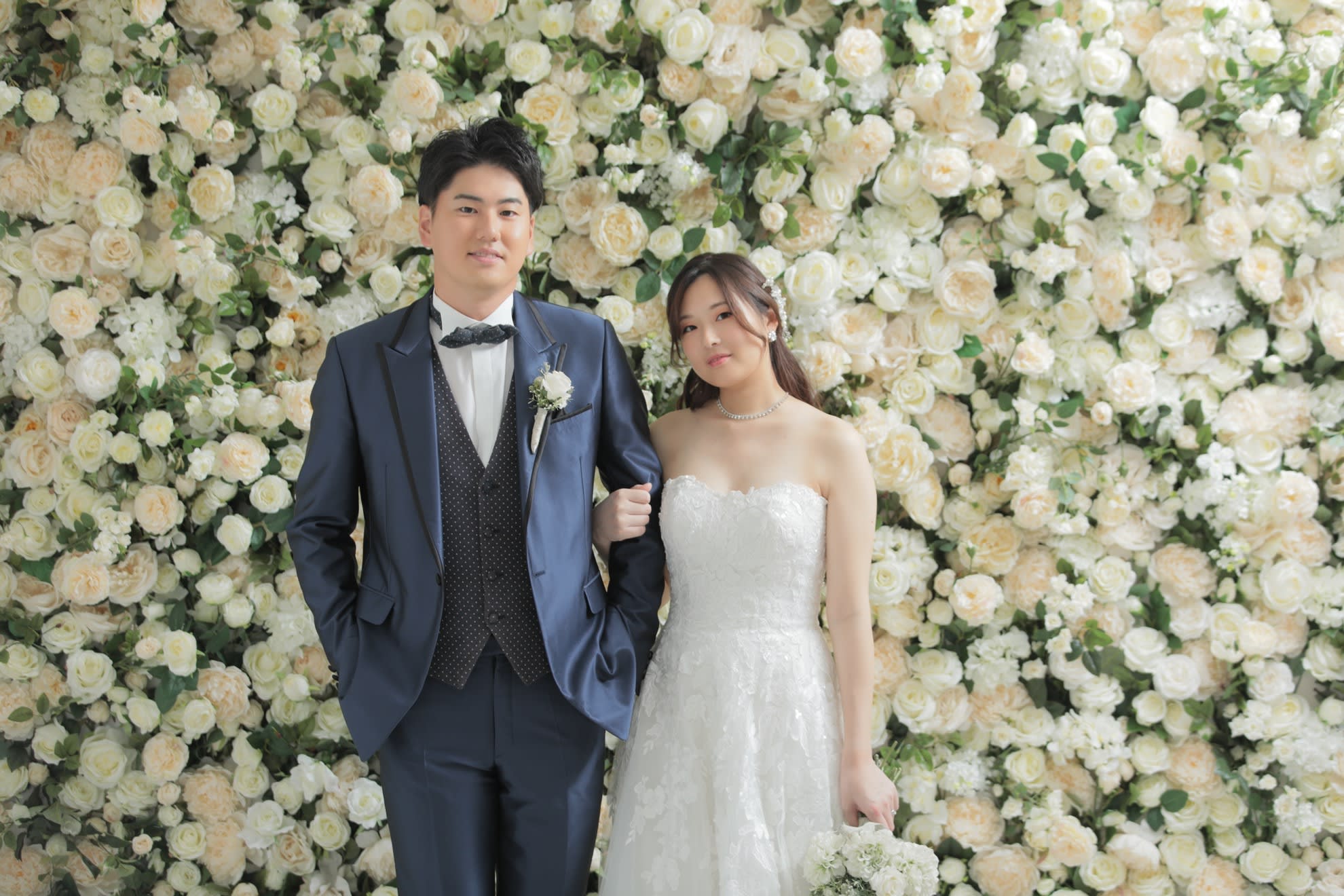 一面お花の壁が登場! 横浜みなとみらい店スタジオで撮影するこだわりのウェディングフォト