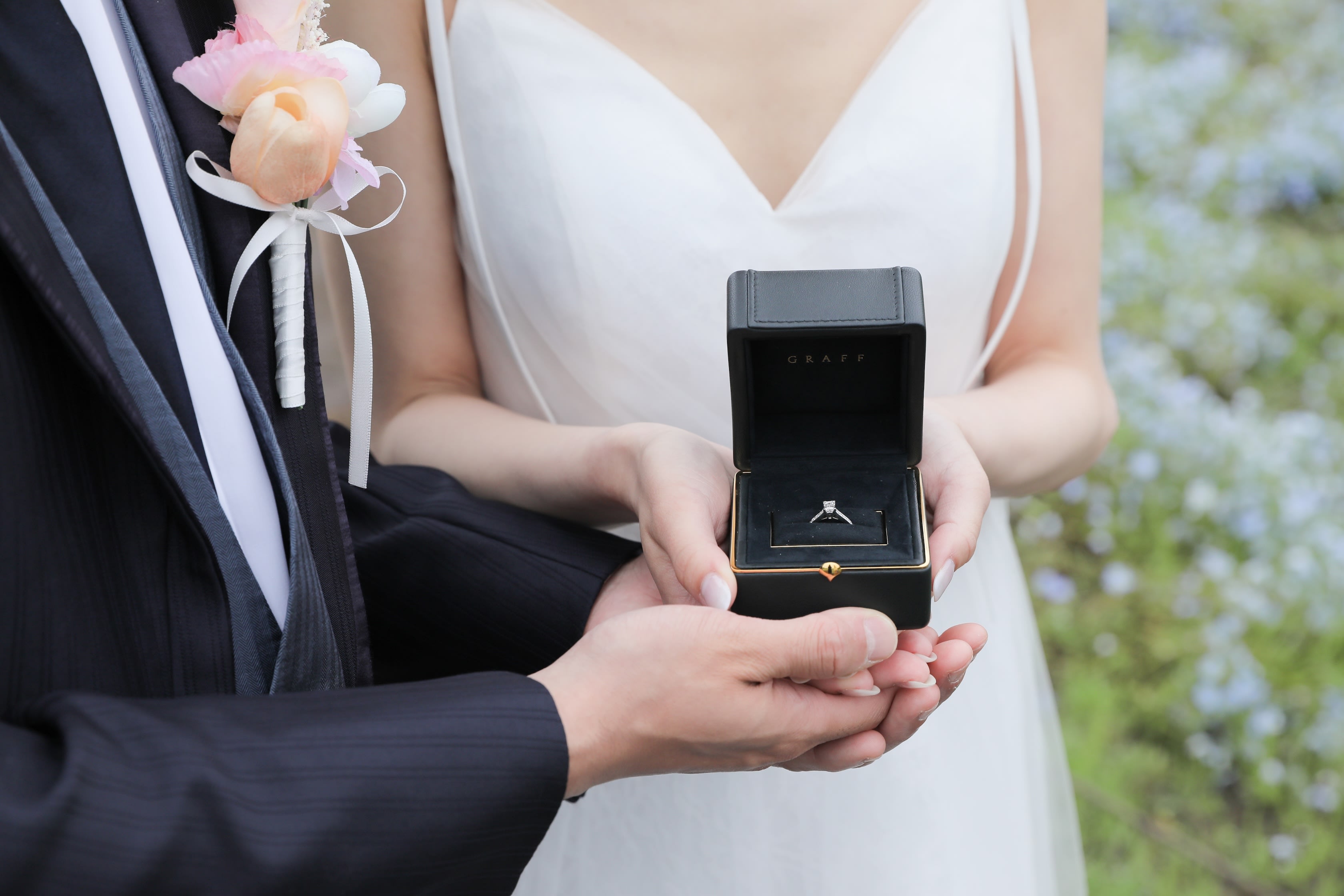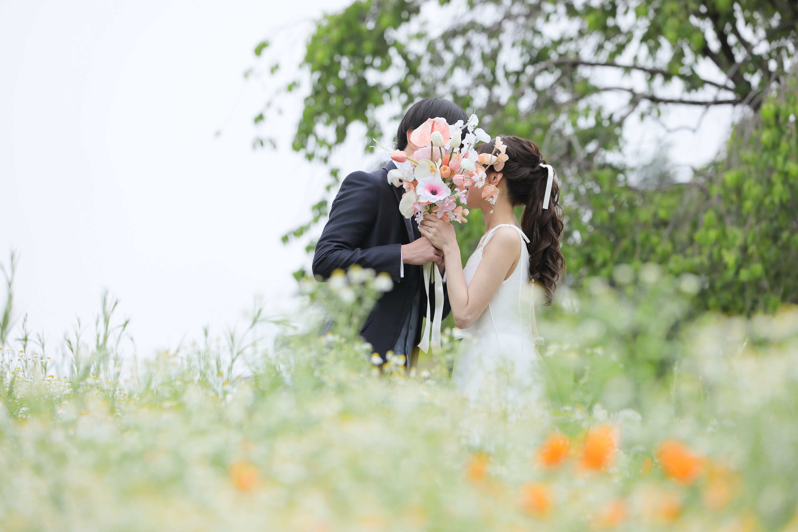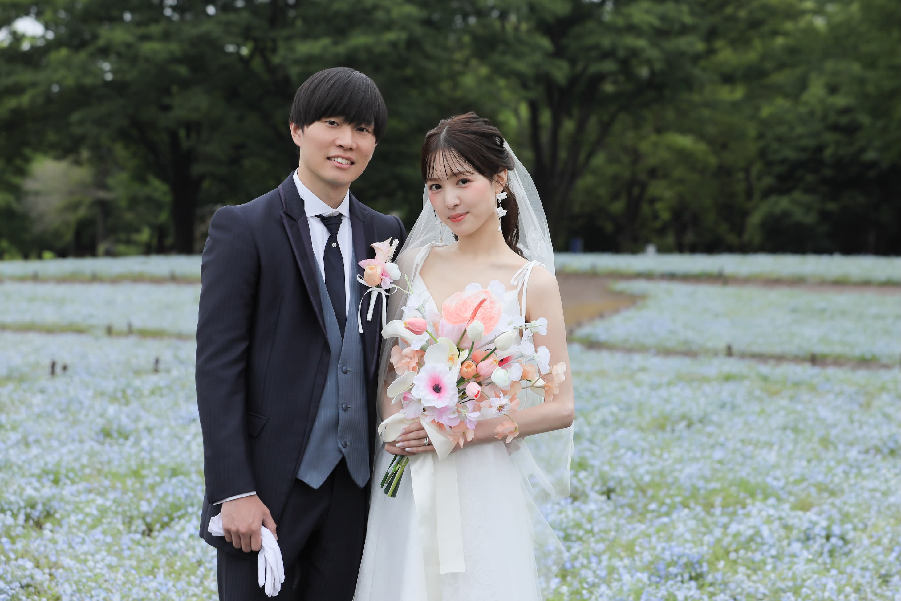 お二人の雰囲気と爽やかな印象のネモフィラが合いますね!