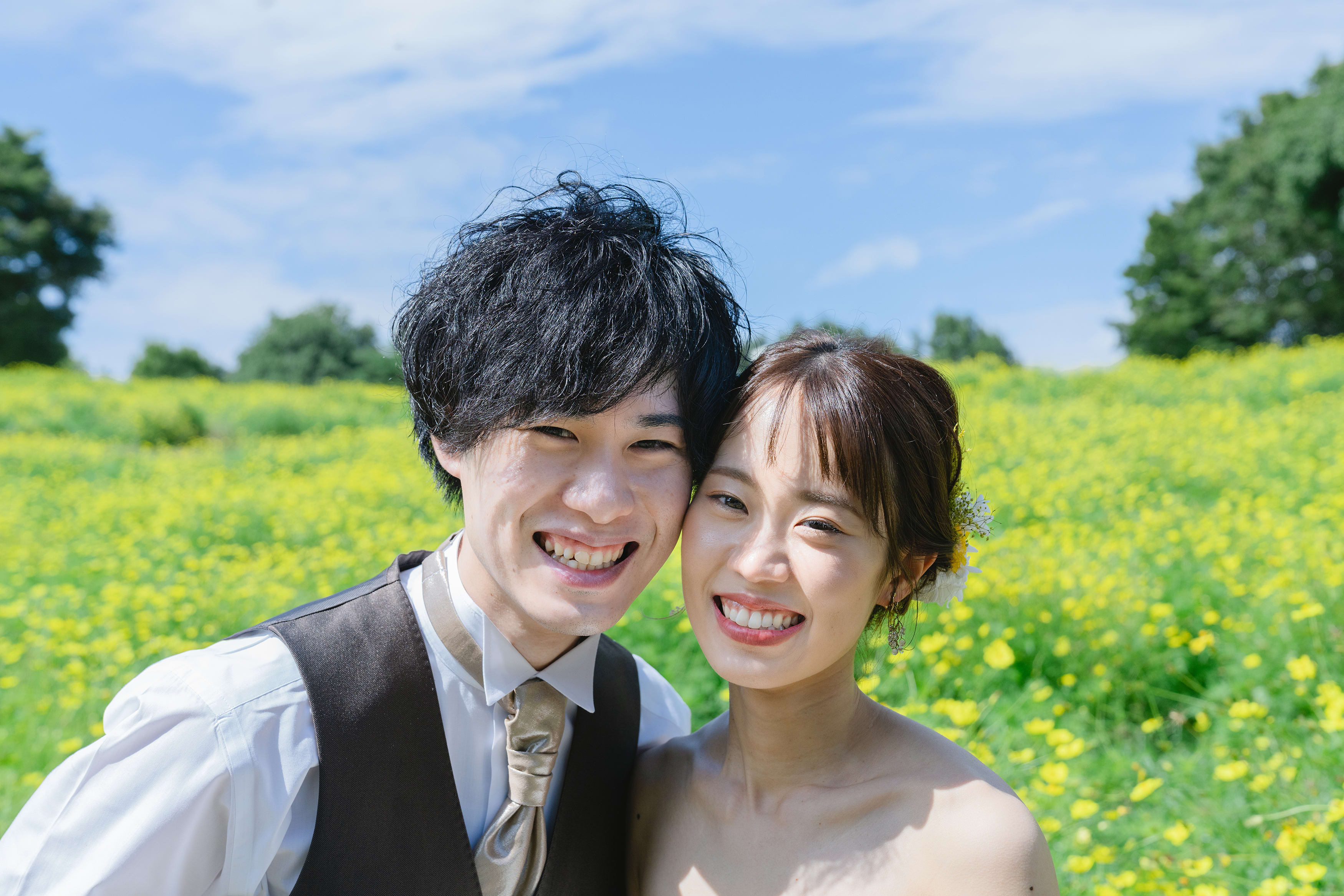 深い緑をバックにお二人の表情を切り取りました!素敵な表情です!