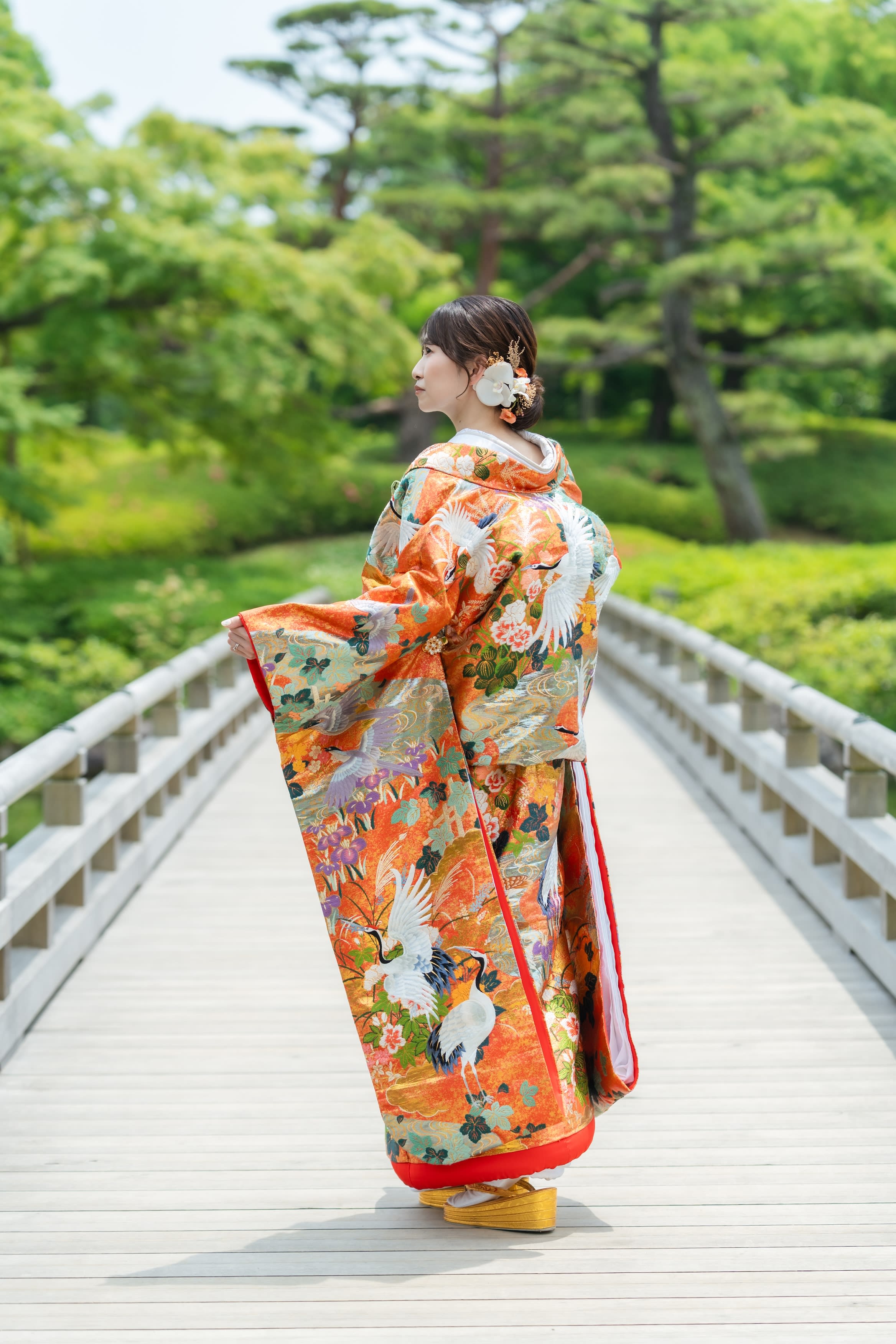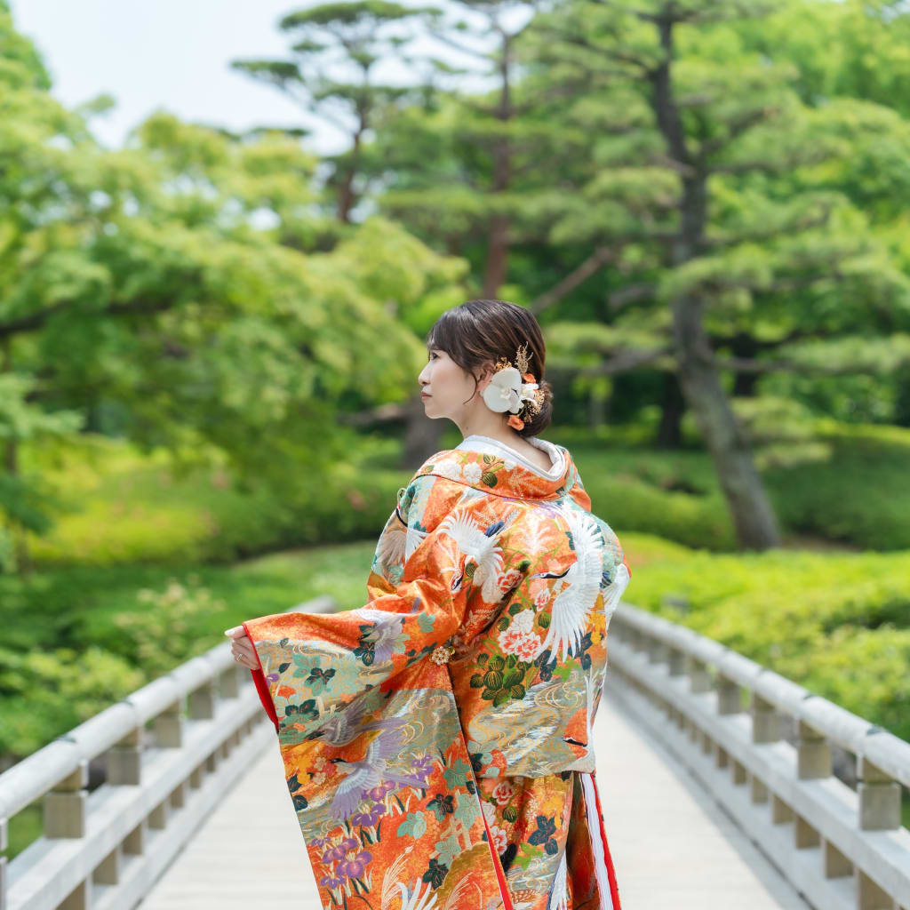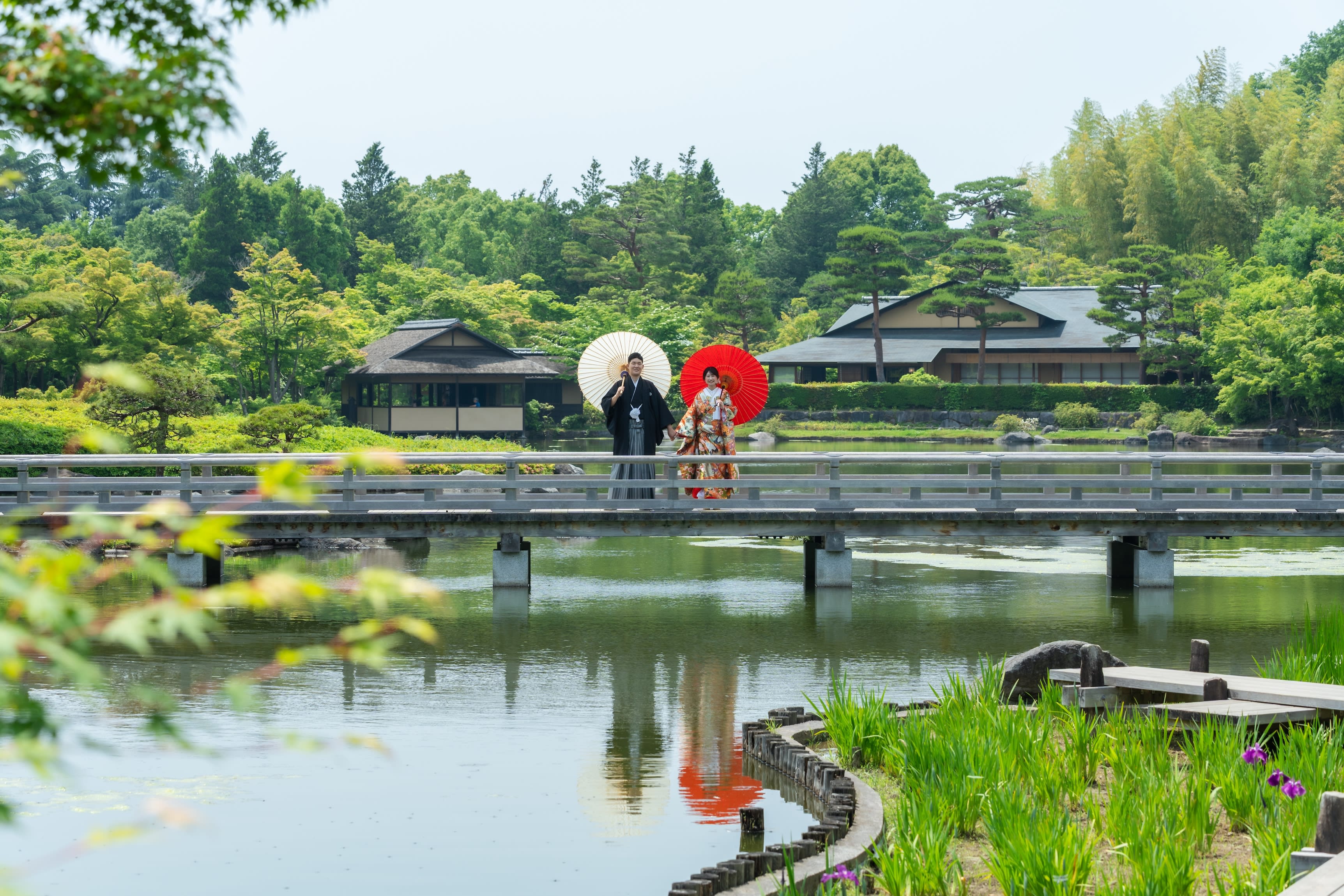 自然いっぱいの日本庭園を眺めるお二人!ゆっくりと時間が流れているような穏やかさです!